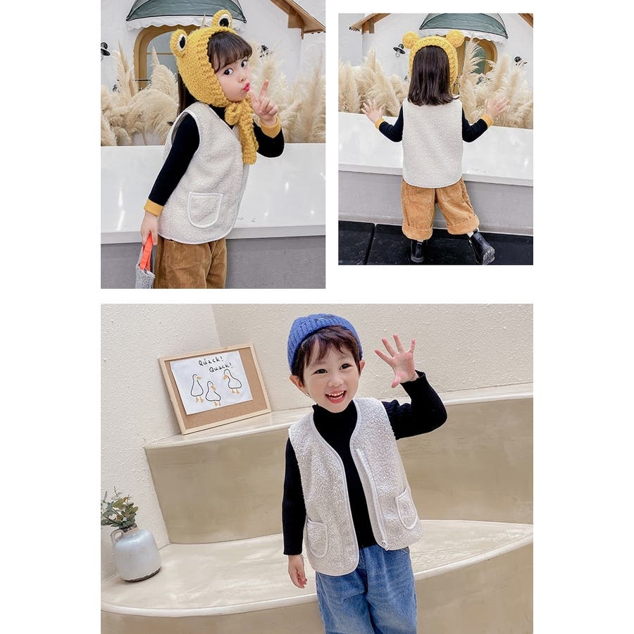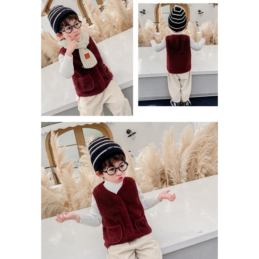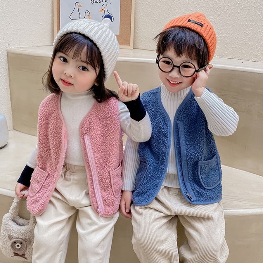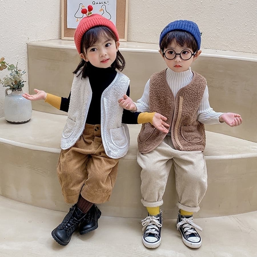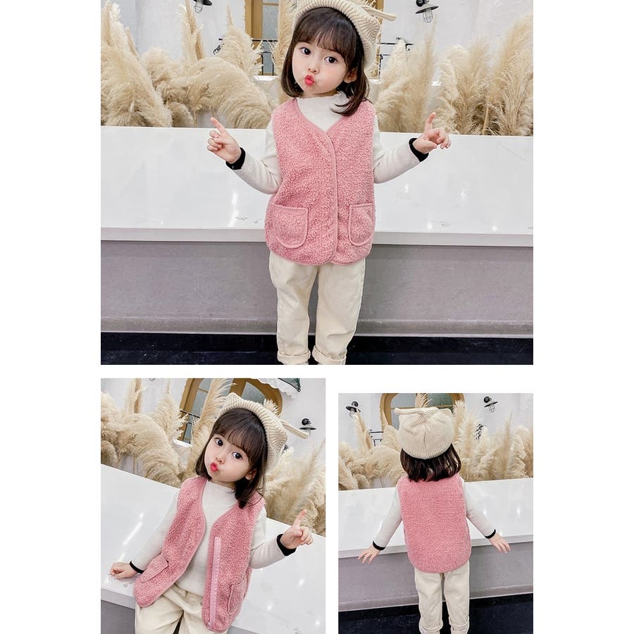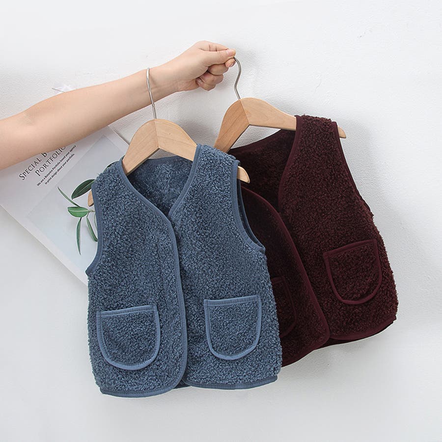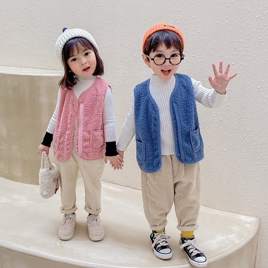 【カーキ】ベスト ボア キッズ
