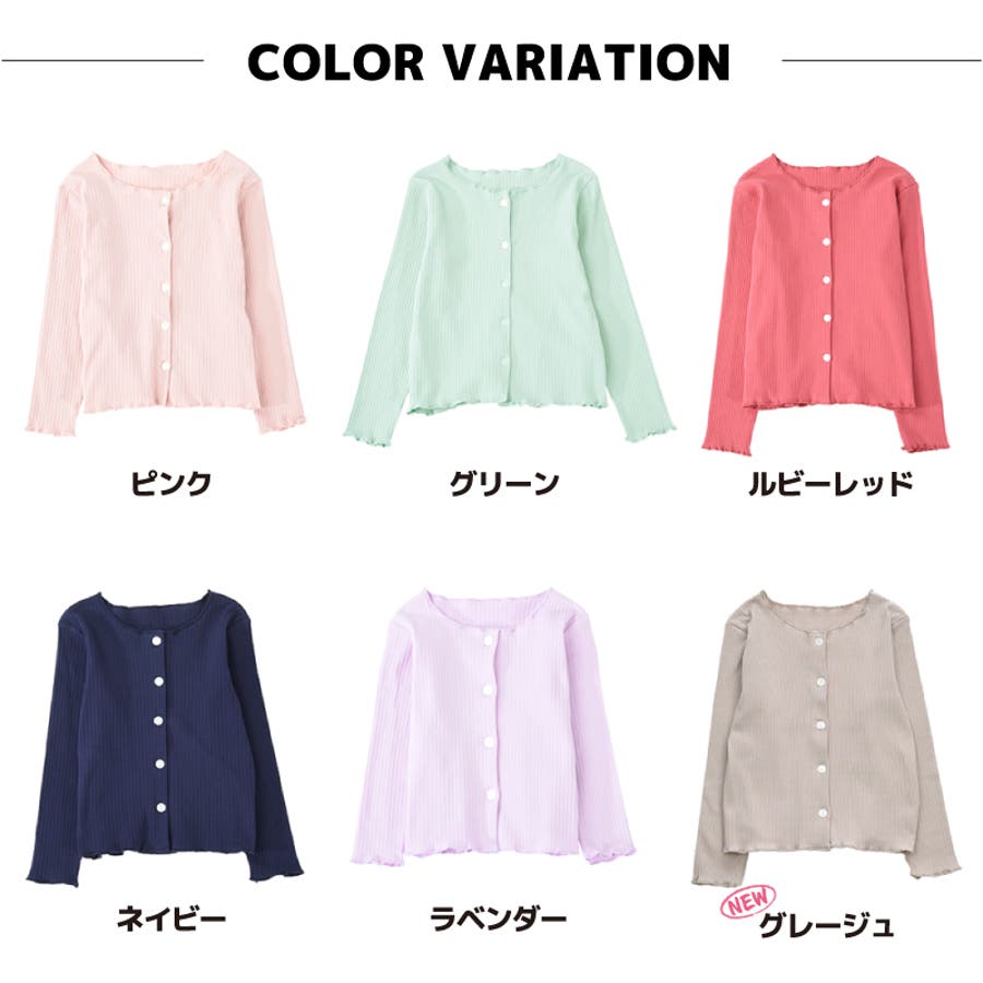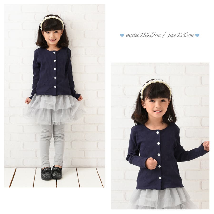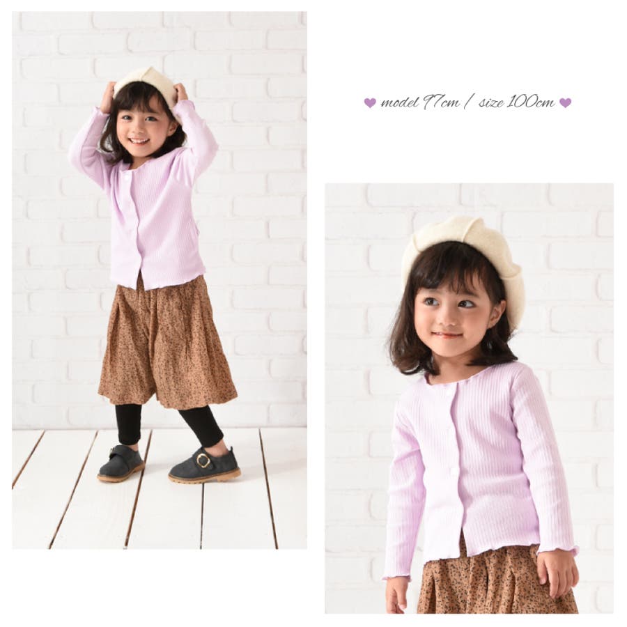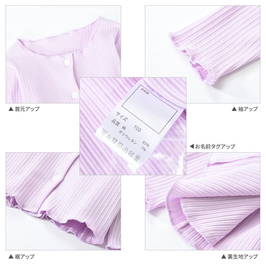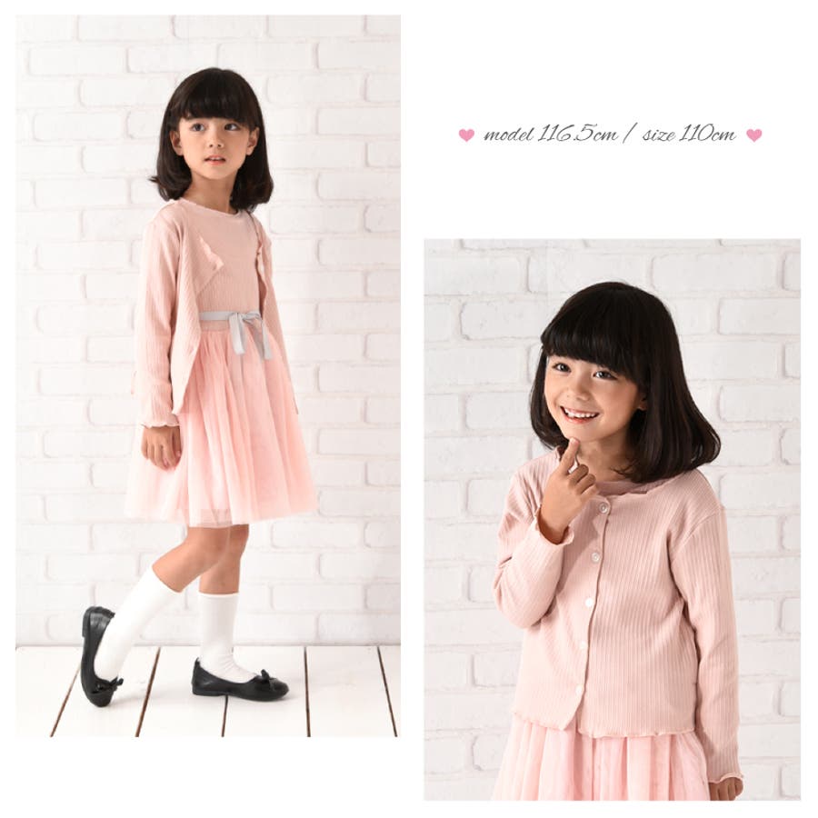 投稿日:2022.06.13首まわりが大きめかと心配でしたが、ワンピの上に羽織るのにちょうど良い空き具合でした。ぴったり細身のデザインですが、伸びるので本人はとても着やすいとのことです。117センチの娘は、袖を一回折り返して130を着ています。メロウフリルなので、折り返してもかわいいです。