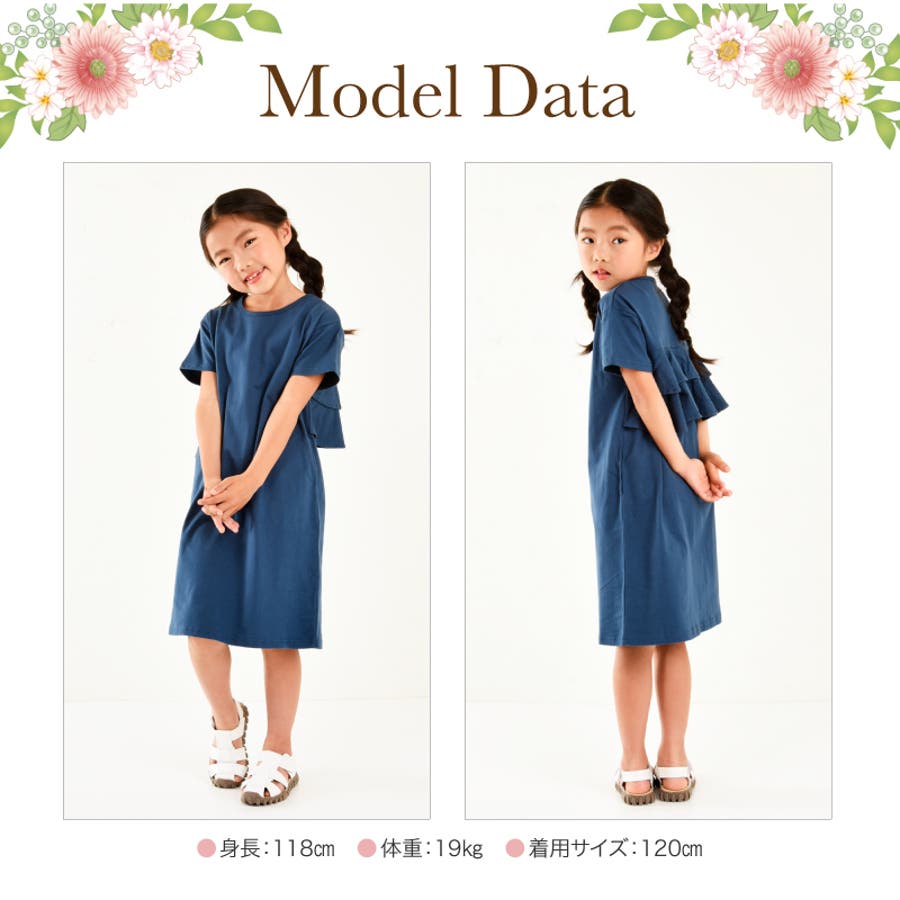 普段130cmを着せてるのですが写真だと大きそうなので今回は120で。丈が長めで膝下くらいでした。背中のフリルがとっても可愛いです。