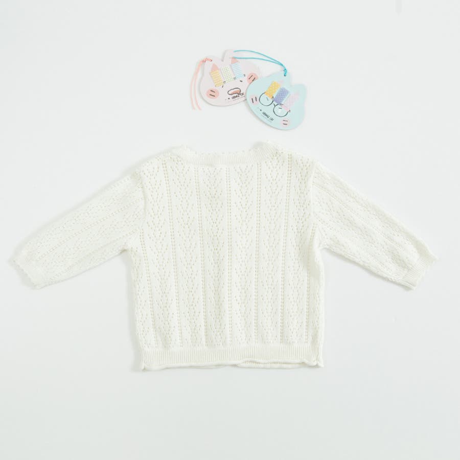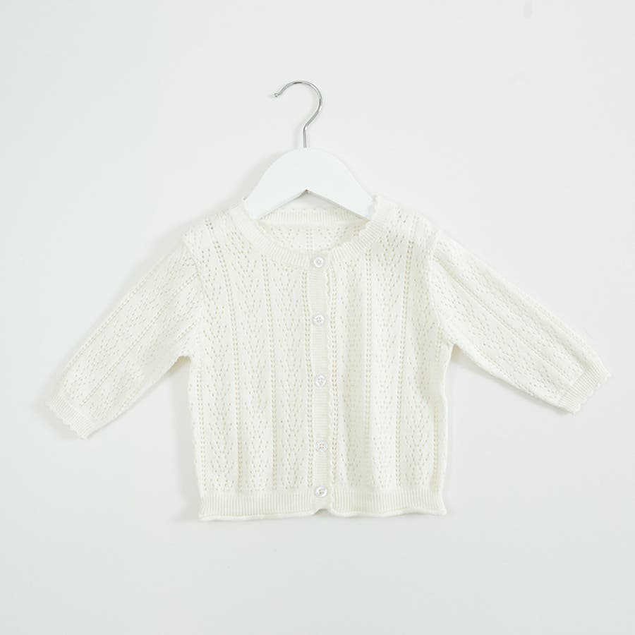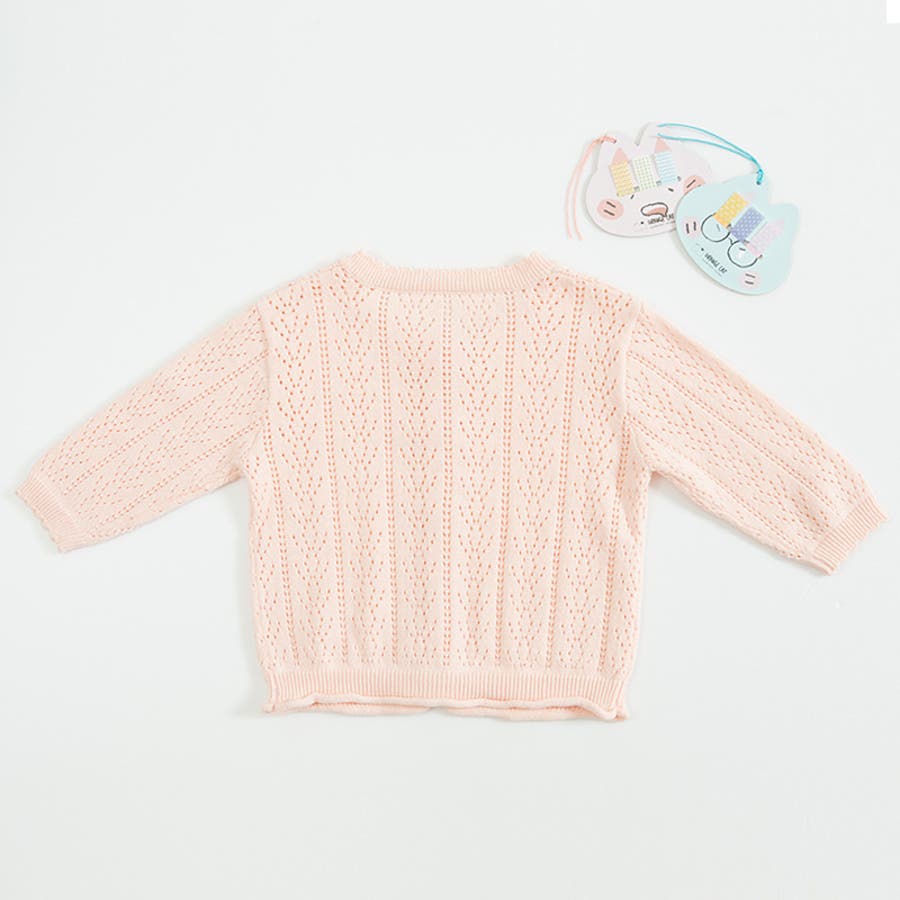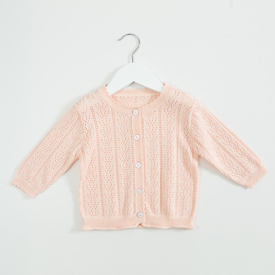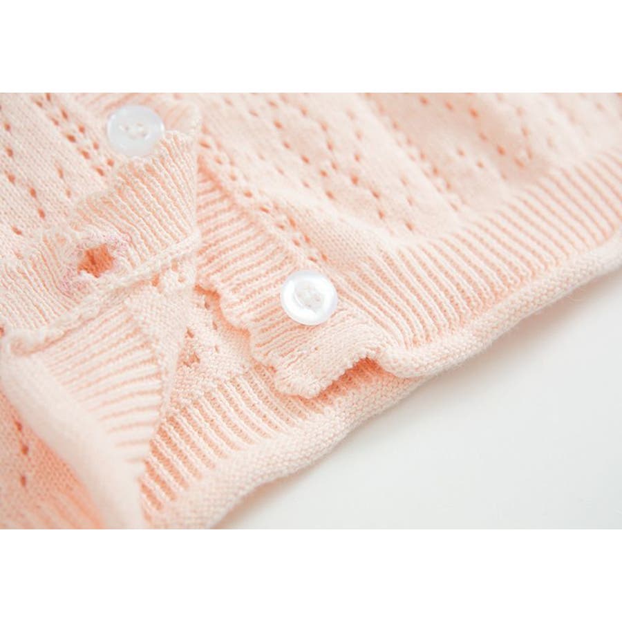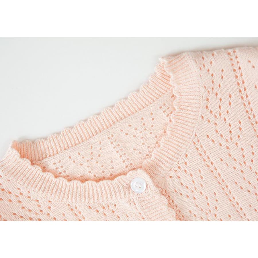 透かし編みデザインがおしゃれな子供用カーディガンです。