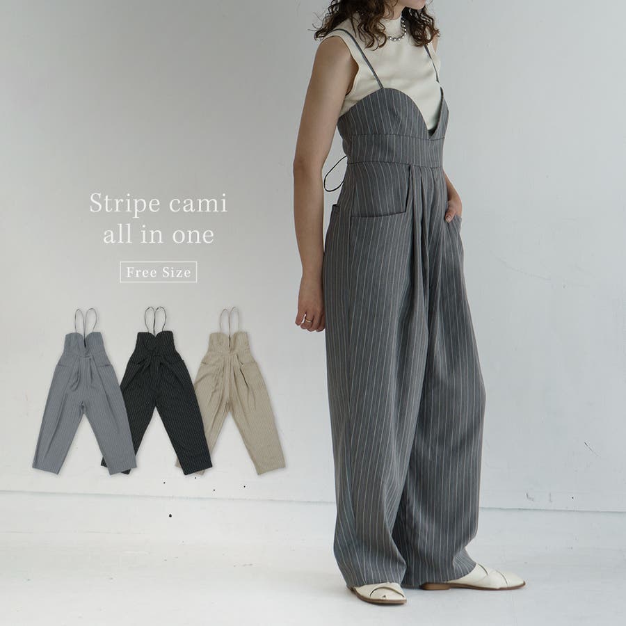 【ストライプキャミオールインワン】 レディース キャミソール