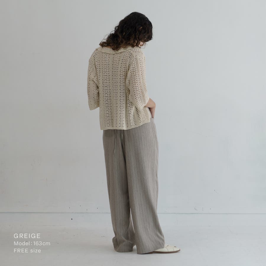 ラフに着れる太めのシルエットにピンストライプ生地を使用し、バランスの良いシルエットに。