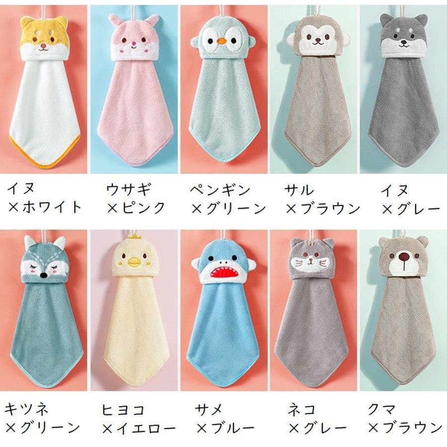 | デザイン×カラー | クマ×ブラウン / ネコ×グレー / イヌ×グレー / イヌ×ホワイト / キツネ×グリーン / ヒヨコ×イエロー / サル×ブラウン / ペンギン×グリーン / サメ×ブルー / ウサギ×ピンク |