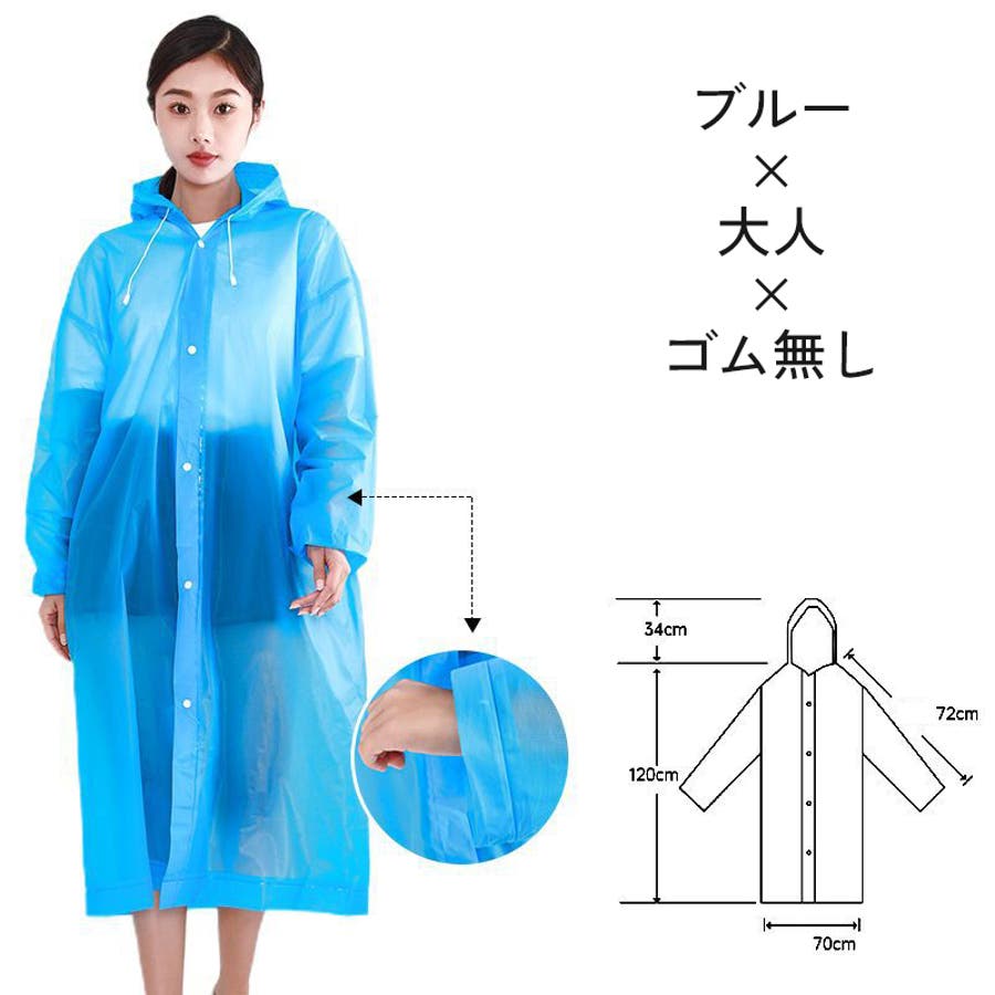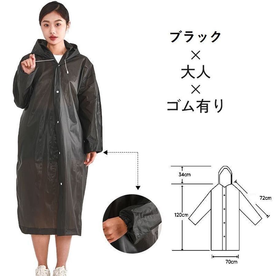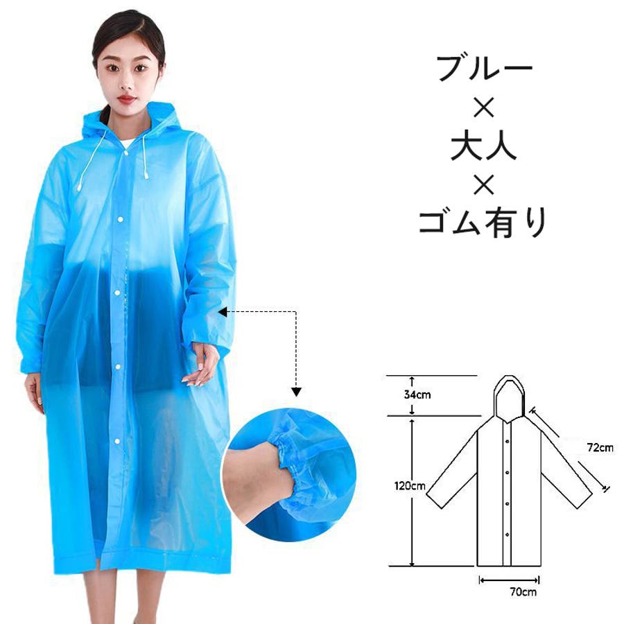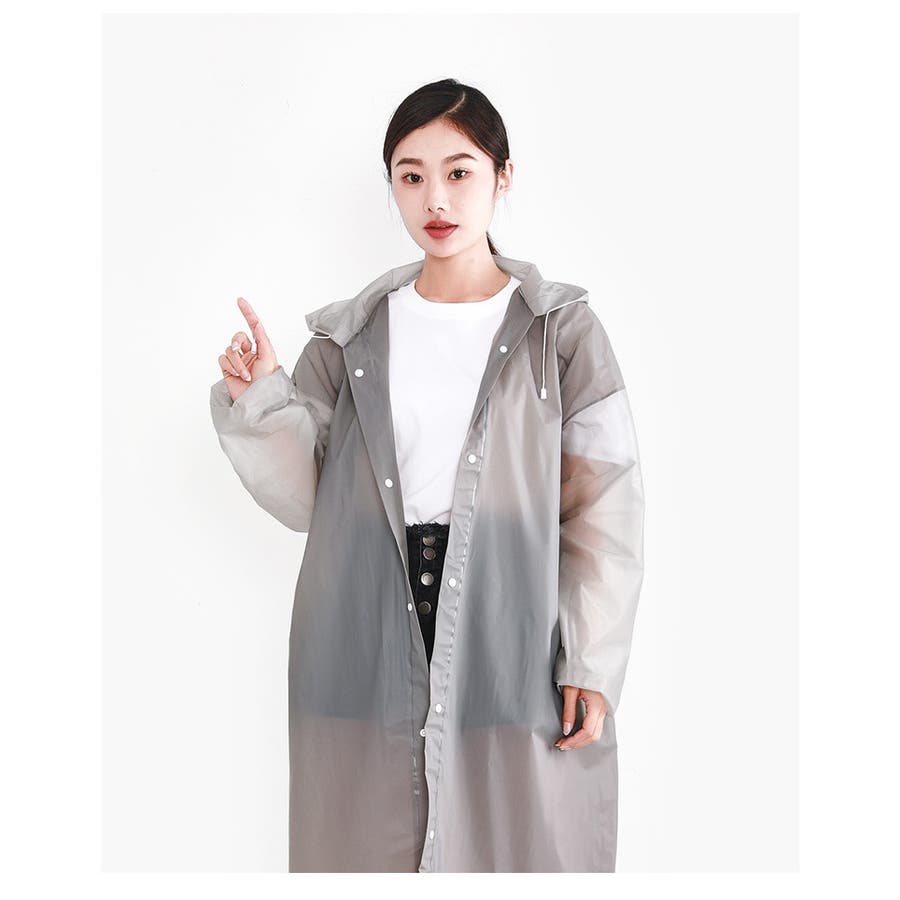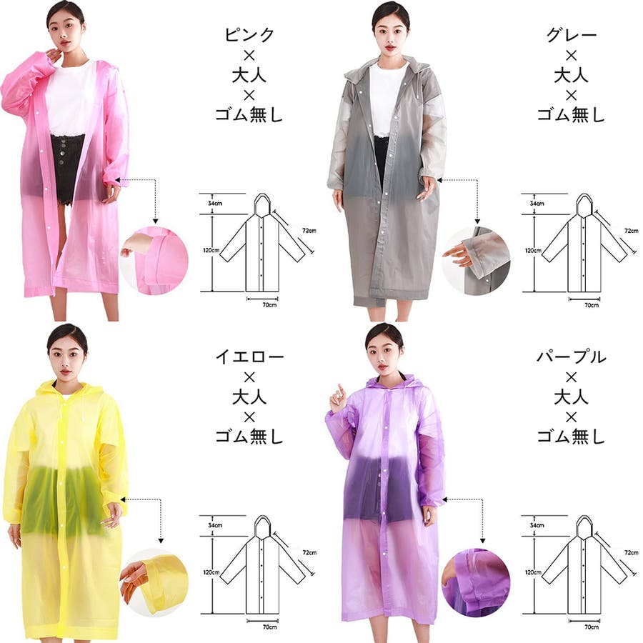 子供から大人まで幅広いサイズを取り揃えた、半透明のシンプルなレインコートです。