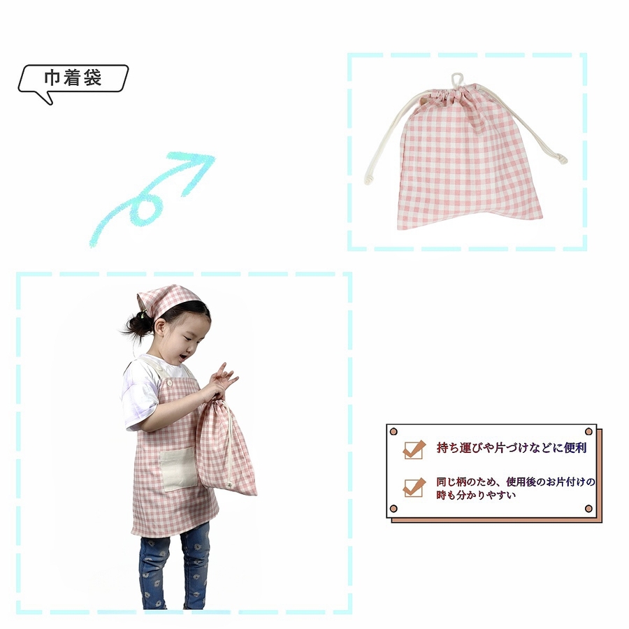 エプロン 三角巾付き 巾着袋