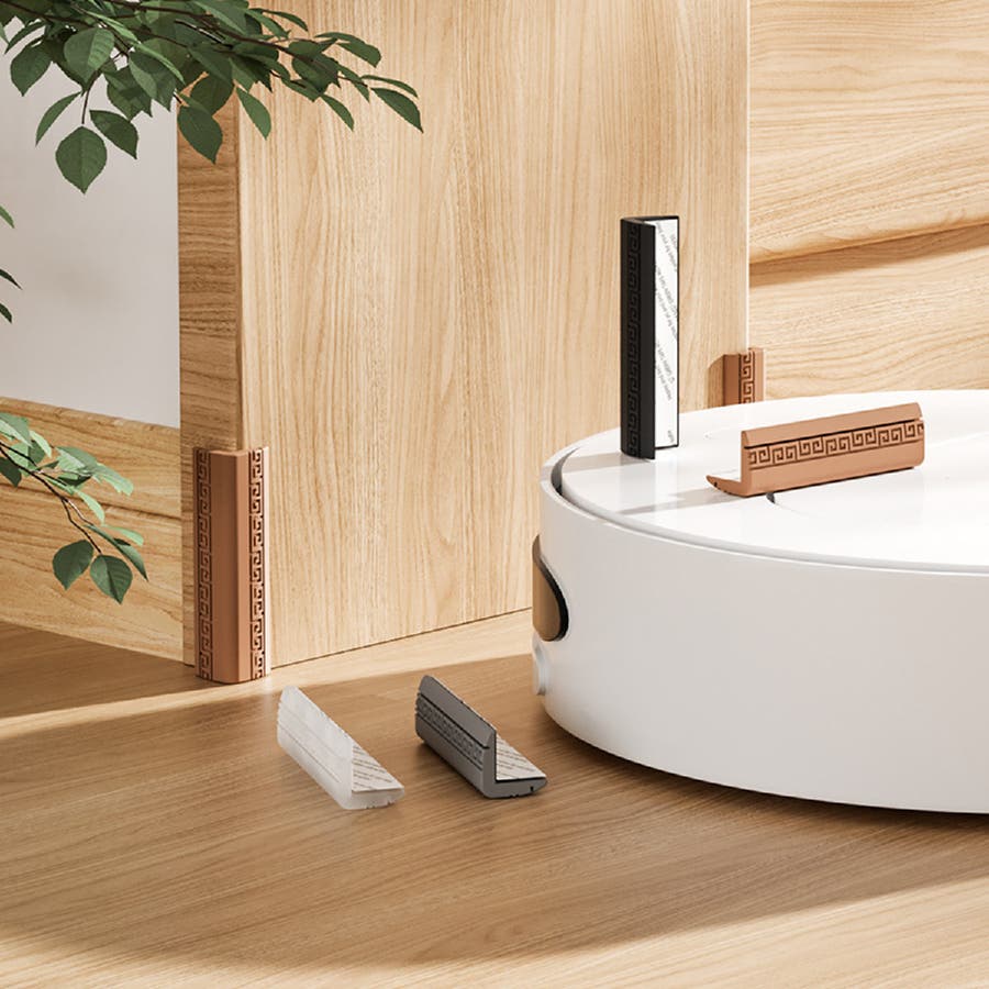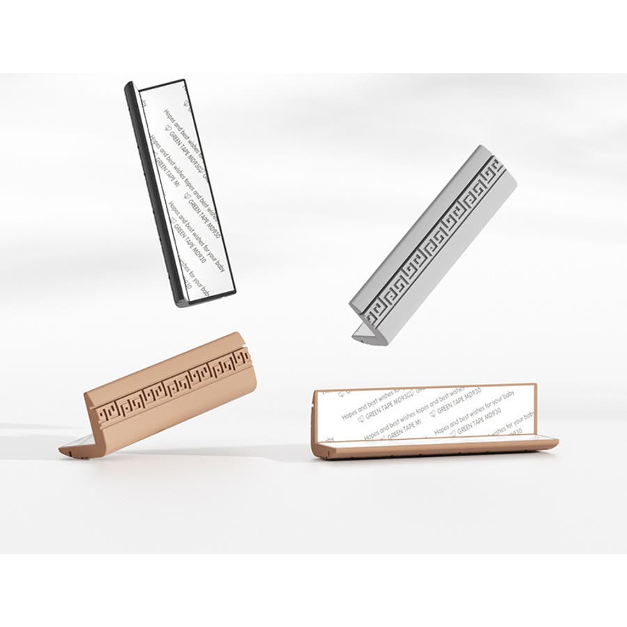 角に貼り付けるだけで簡単に設置できる、L字形のコーナーガード、2個セットです。