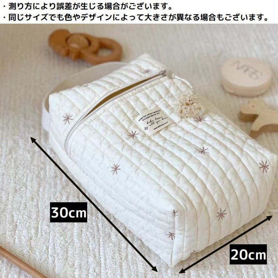 おしゃれな刺繍入りキルティング生地のオムツポーチです。