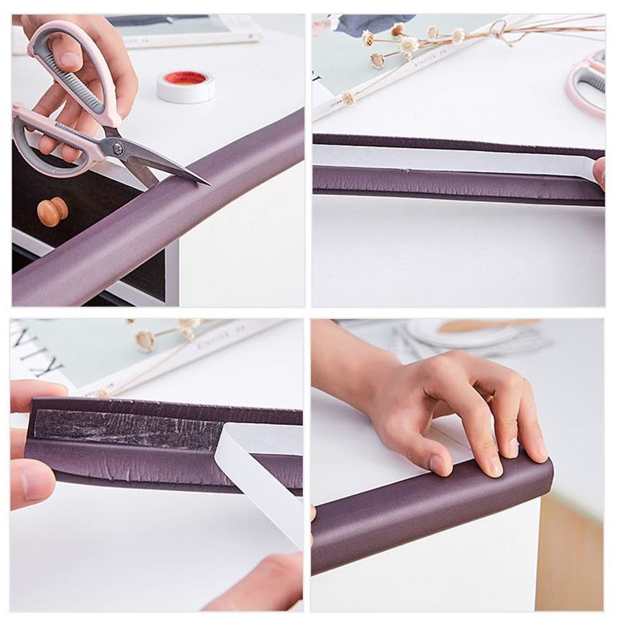 机や棚などの角に両面テープで取り付けるだけ!