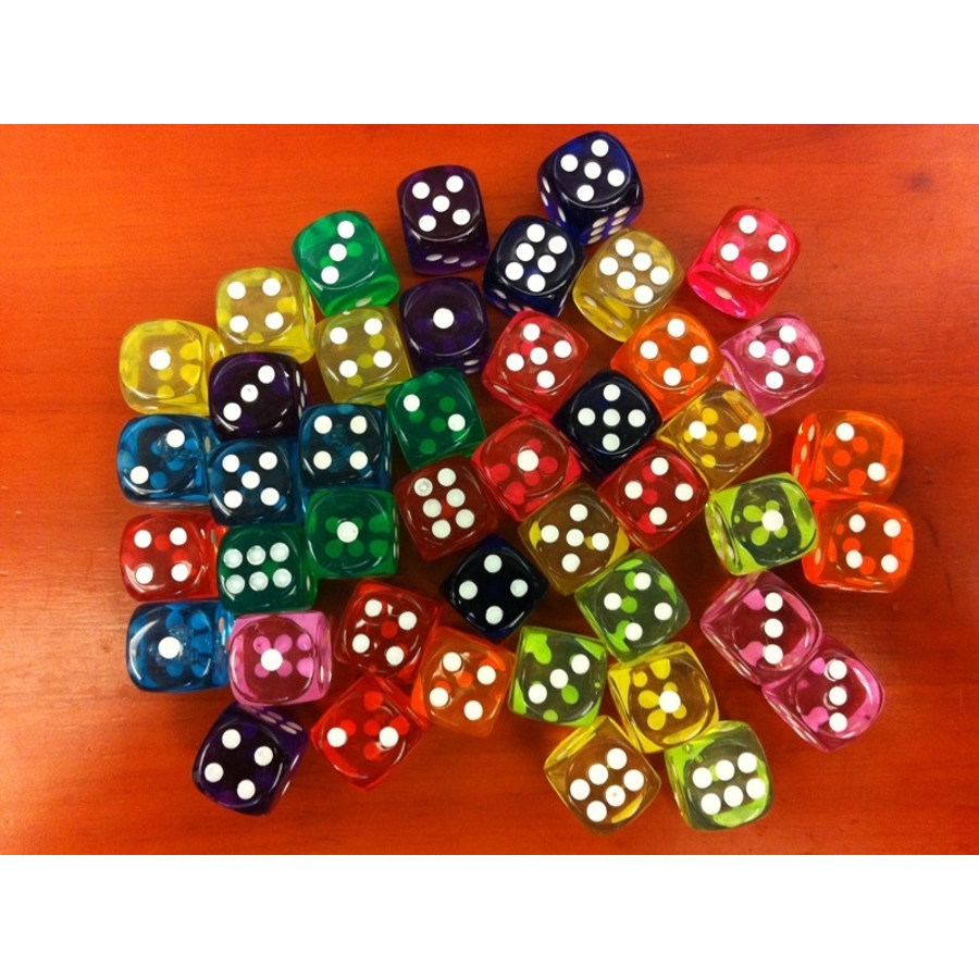 息子がサイコロを集めていて、ちょうど同じサイズの白と黒を買ったので、スケルトンで色んなカラーを買えて喜んでいました。自分の好きなカラーを1個から買えてありがたかったです。