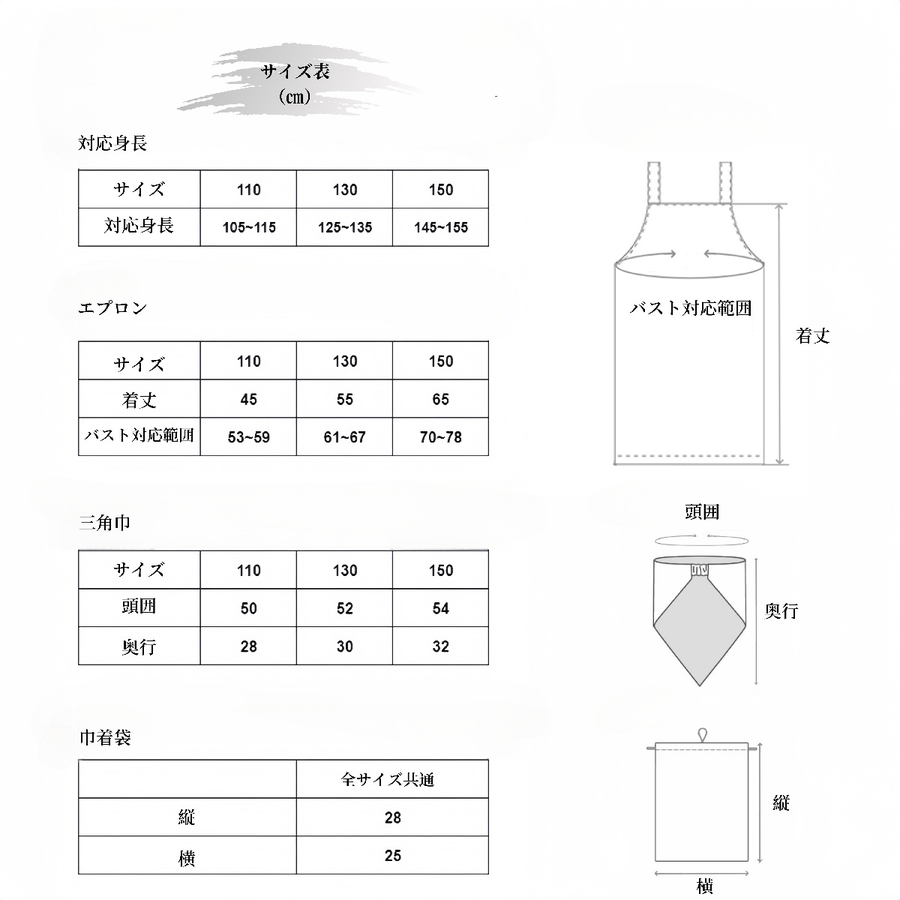 エプロン、三角巾、巾着袋