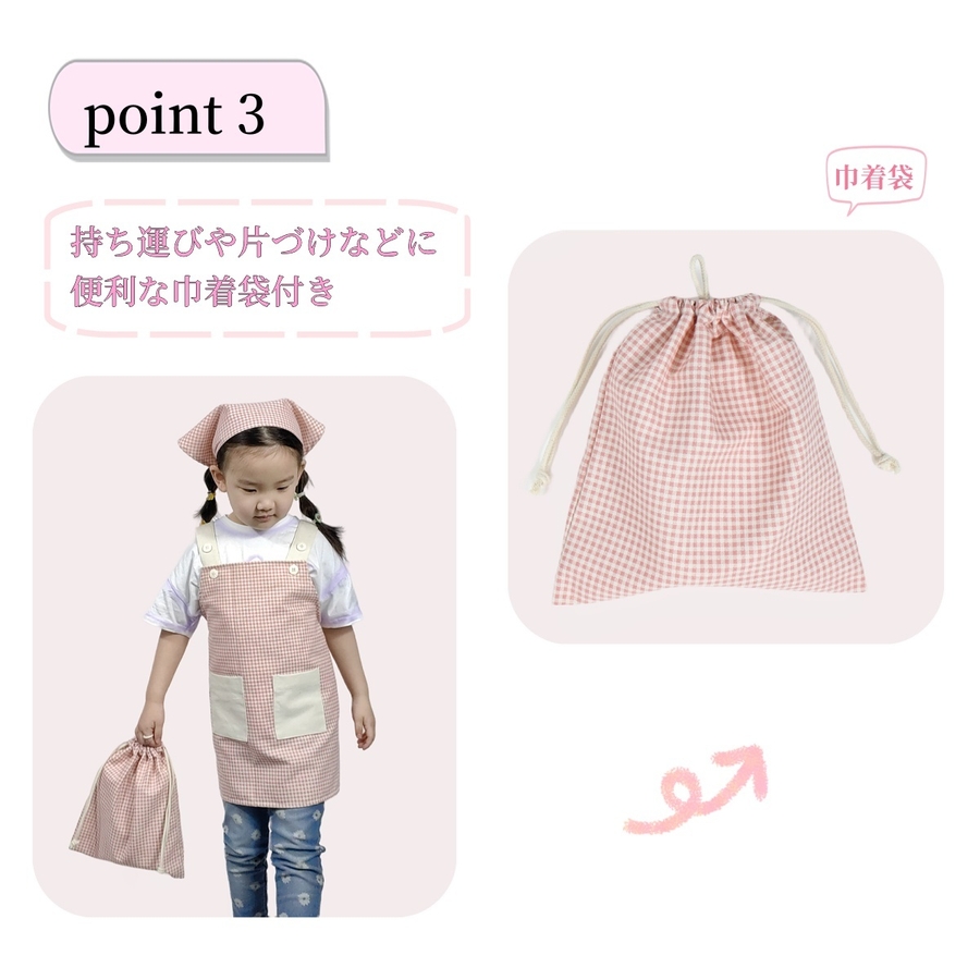 エプロン 三角巾付き 巾着袋