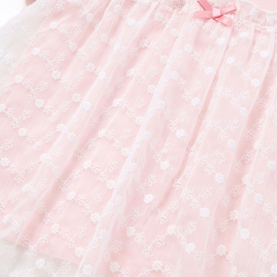 キャミソールの部分にはフラワー刺しゅうの入ったレーシーなシフォン生地を使用し、異素材ミックスならではの表情豊かなデザインが魅力です。