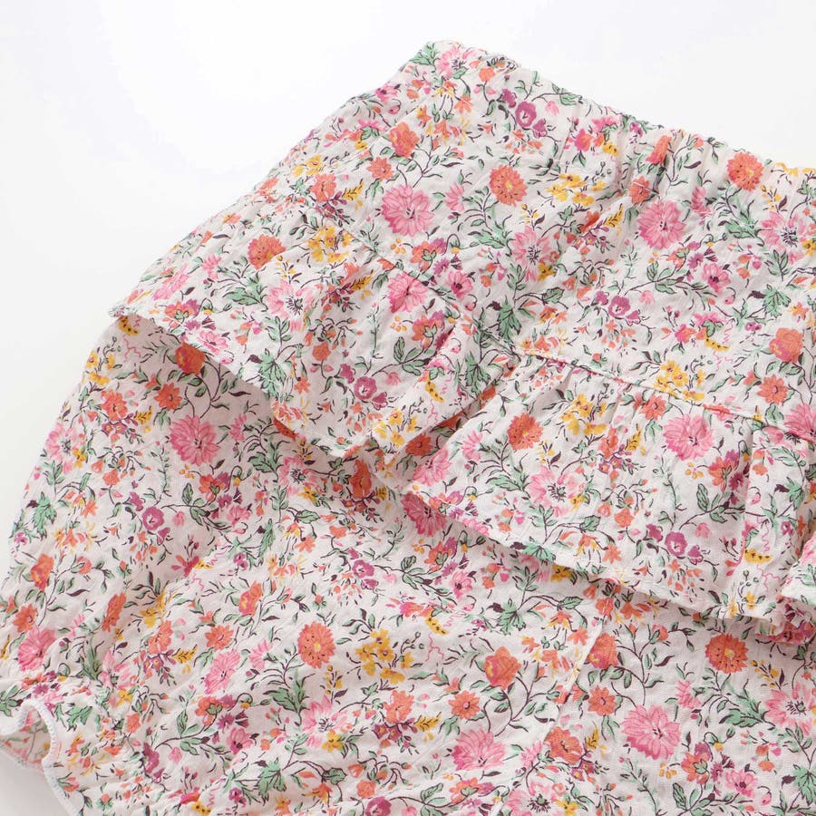 ブルマもリバティプリントの花柄で統一されており、一枚で華やかなコーディネートが完成します。