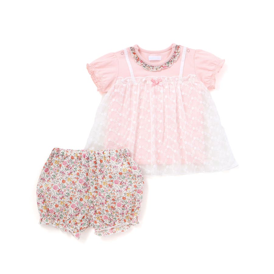 【お揃い】チュニック半袖Tシャツ&リバティプリント花柄ブルマセット(70~90c…