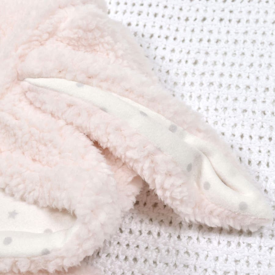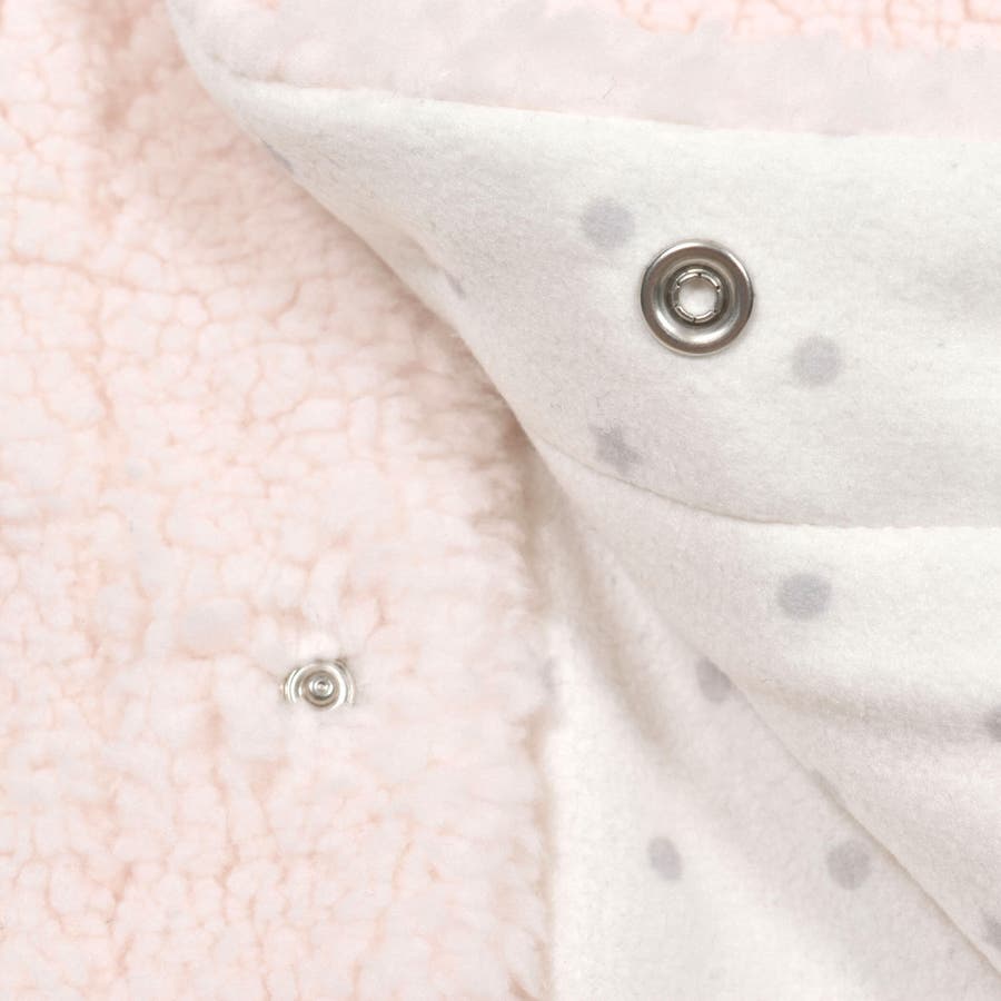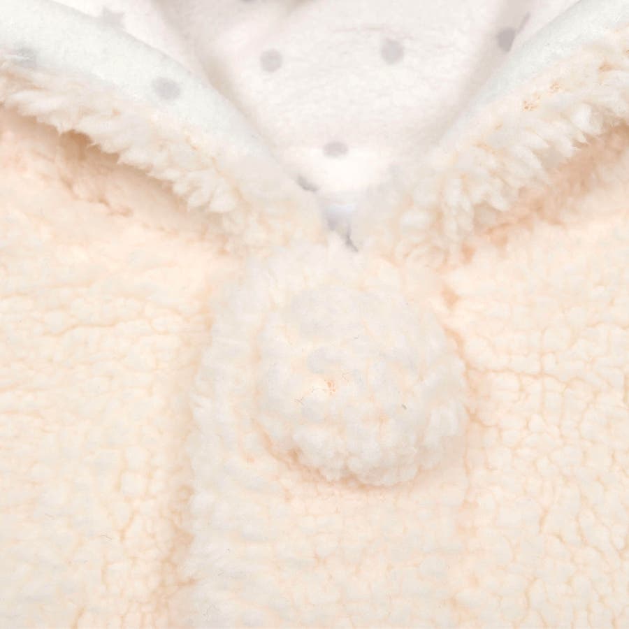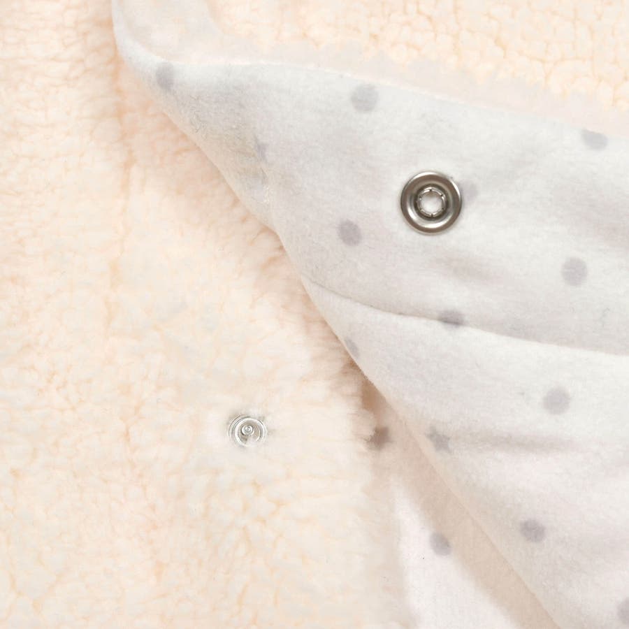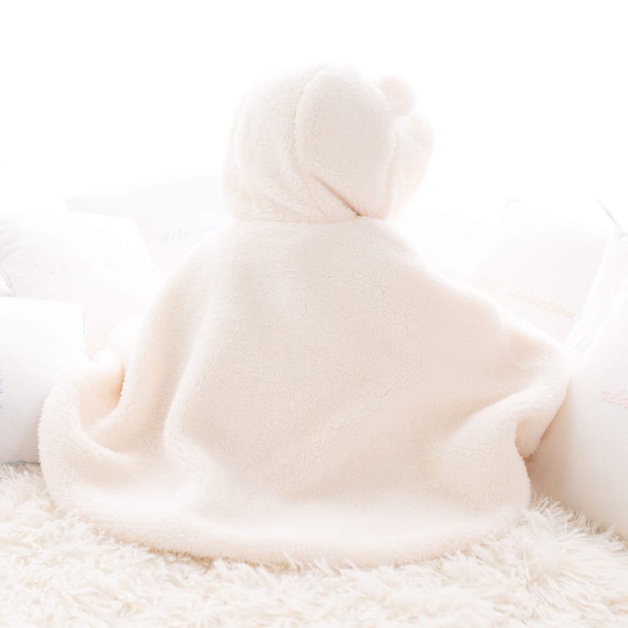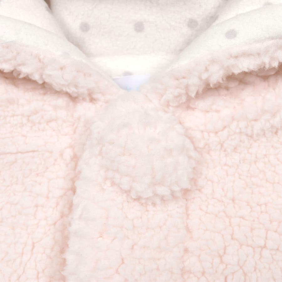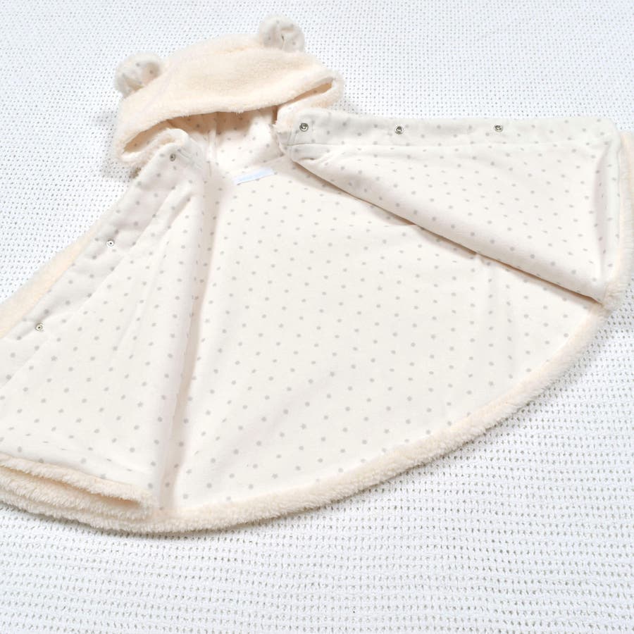 耳が立体になったフードはライトピンク(ピンク)はうさぎさん、アイボリー(オフホワイト)はクマさん、グリーングレー(グリーン)は恐竜になっています。