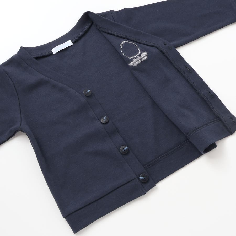 デイリースタイルからちょっとしたおめかしまで、幅広く活躍する上品な男の子用Vネックカーディガンです。