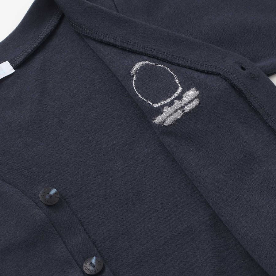 特別な日に輝く、男の子ベビー用エンブレム付きカーディガン。