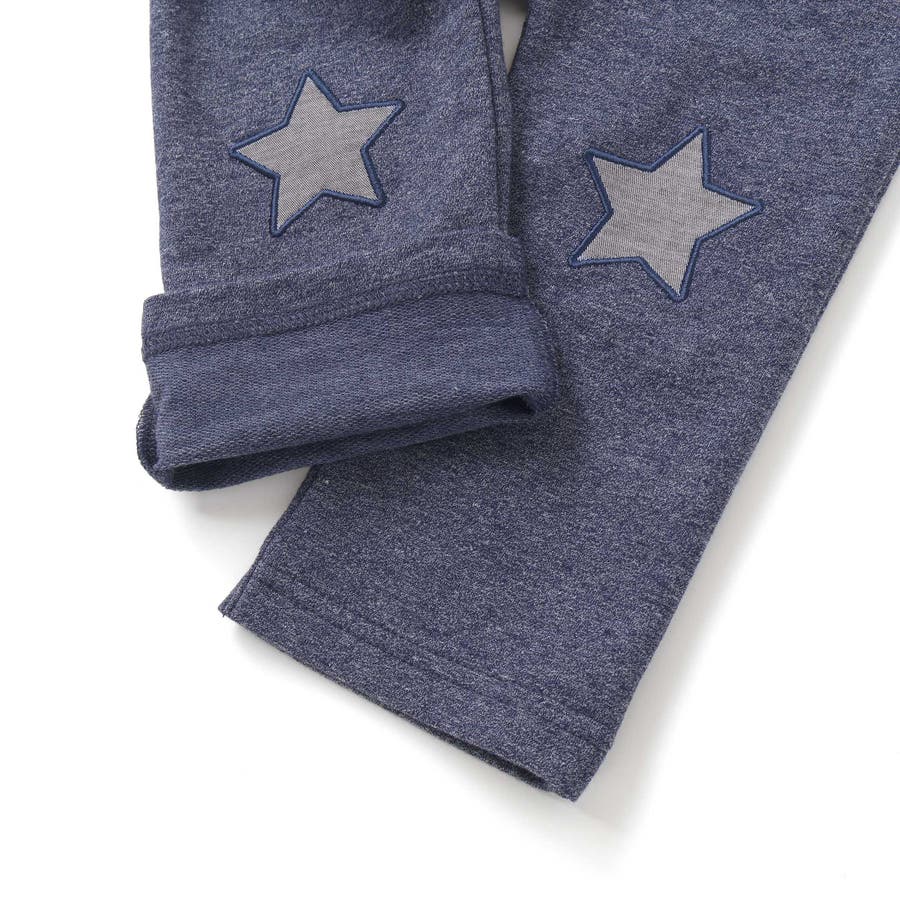 裾の星型パッチがポイントの男の子用ロングパンツ。