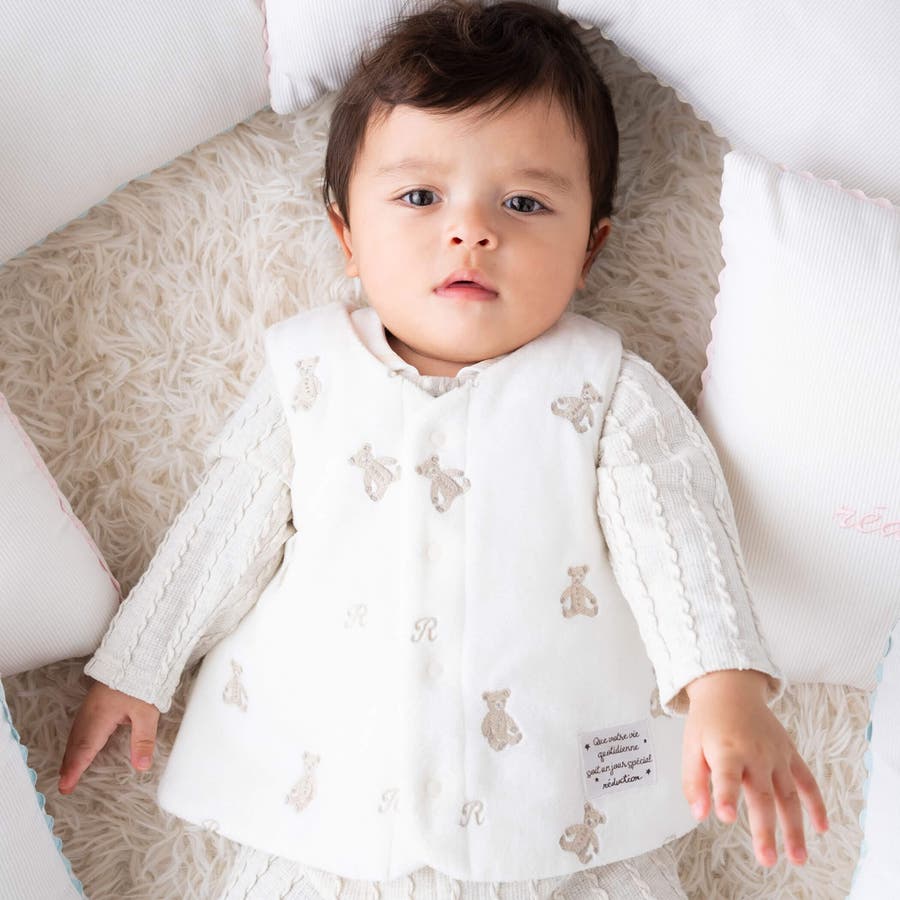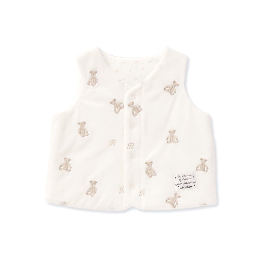 柔らかい素材感でクマの刺しゅうがとっても可愛い中綿入りのベストです。