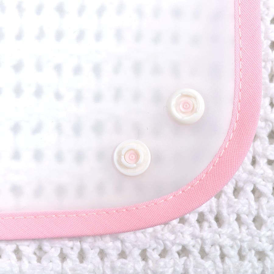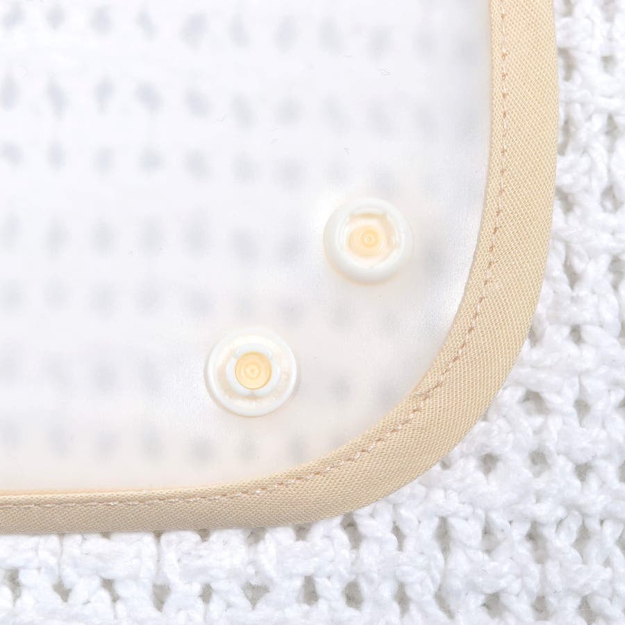 スナップボタンをボタンで留めると立体的になり、食べこぼしを受けやすくなり、テーブルに広がるのを防いでくれます。