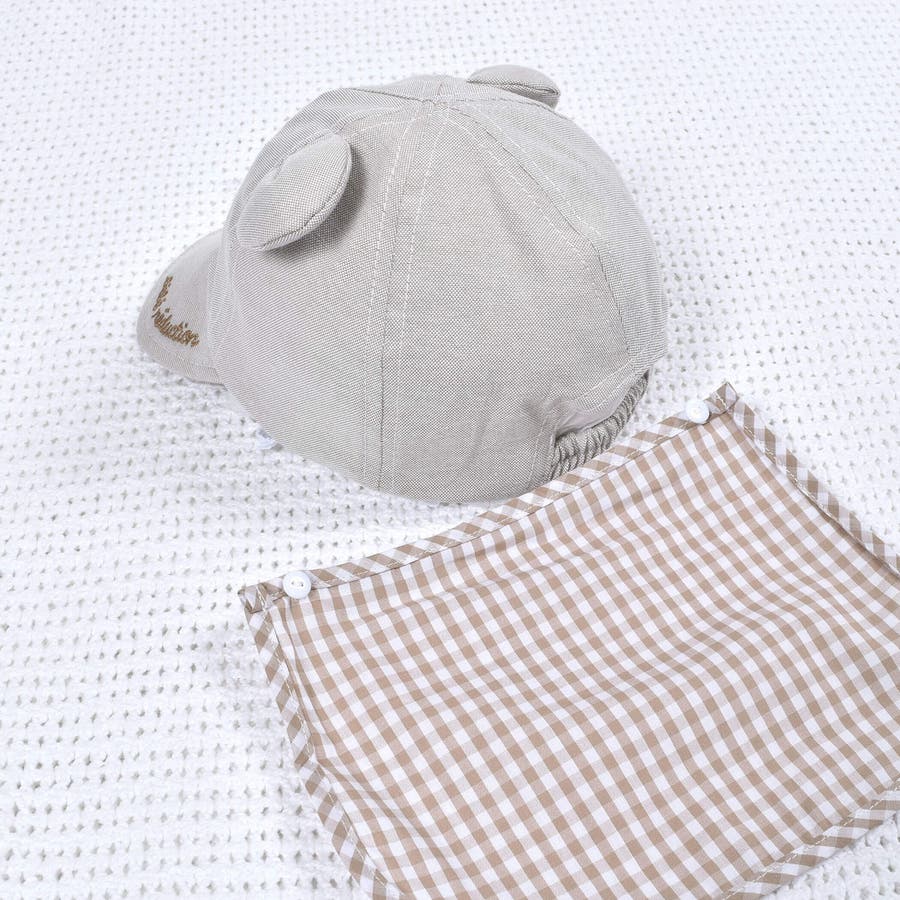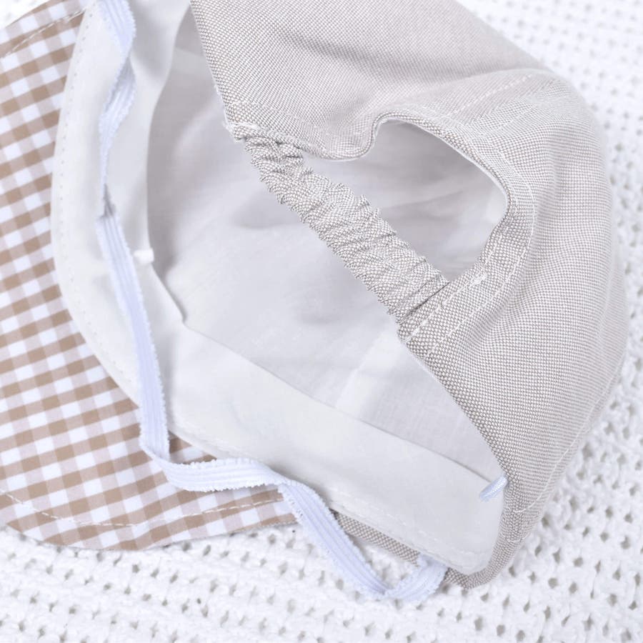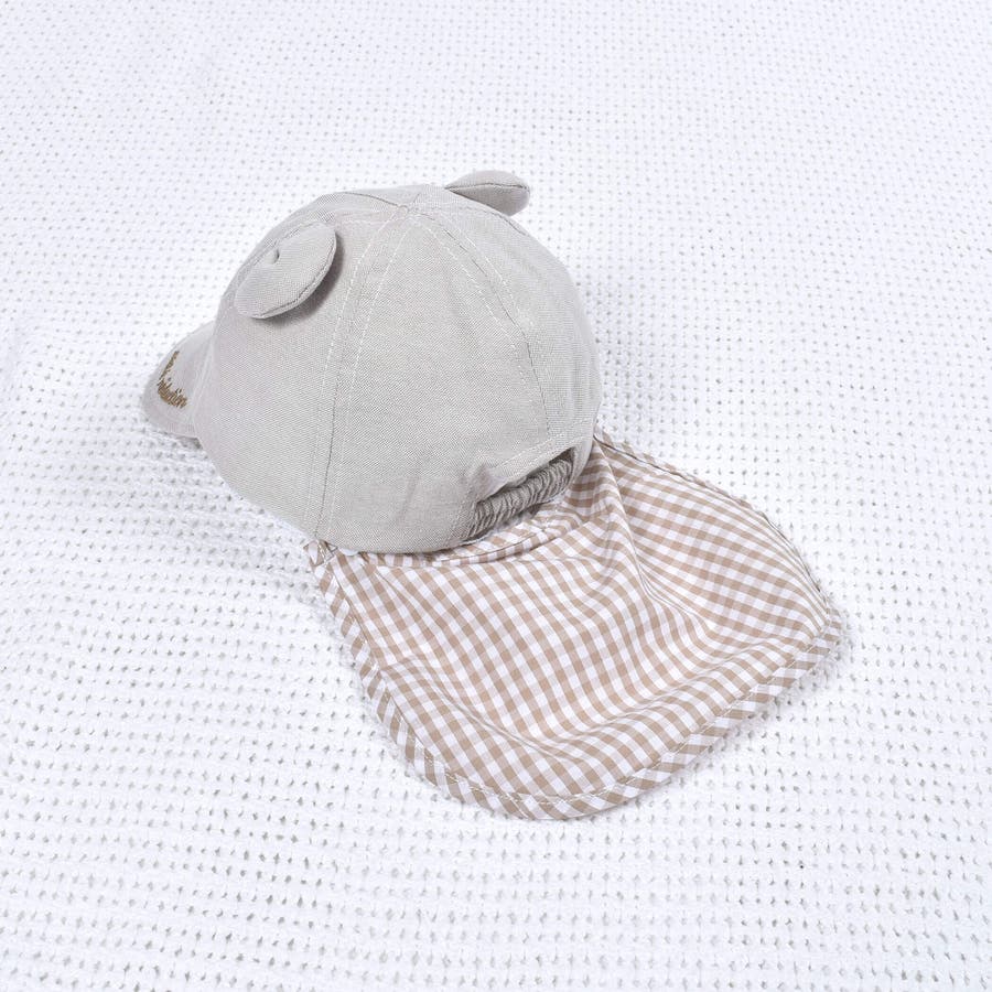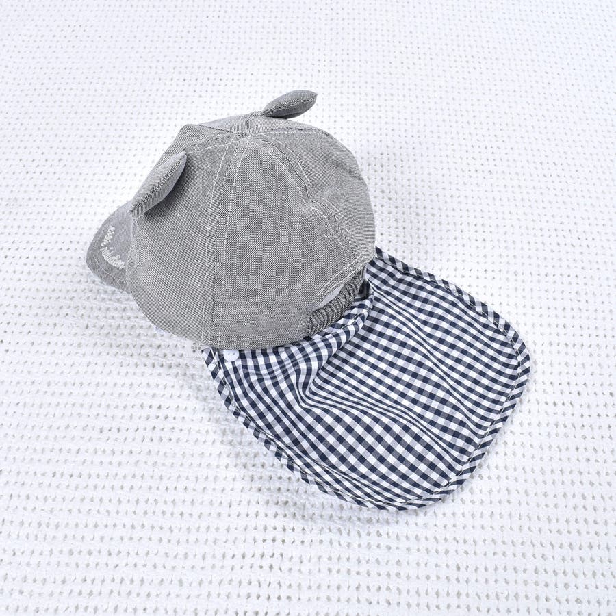 後ろにはボタンで取り外し可能なギンガムの日よけが付いています。