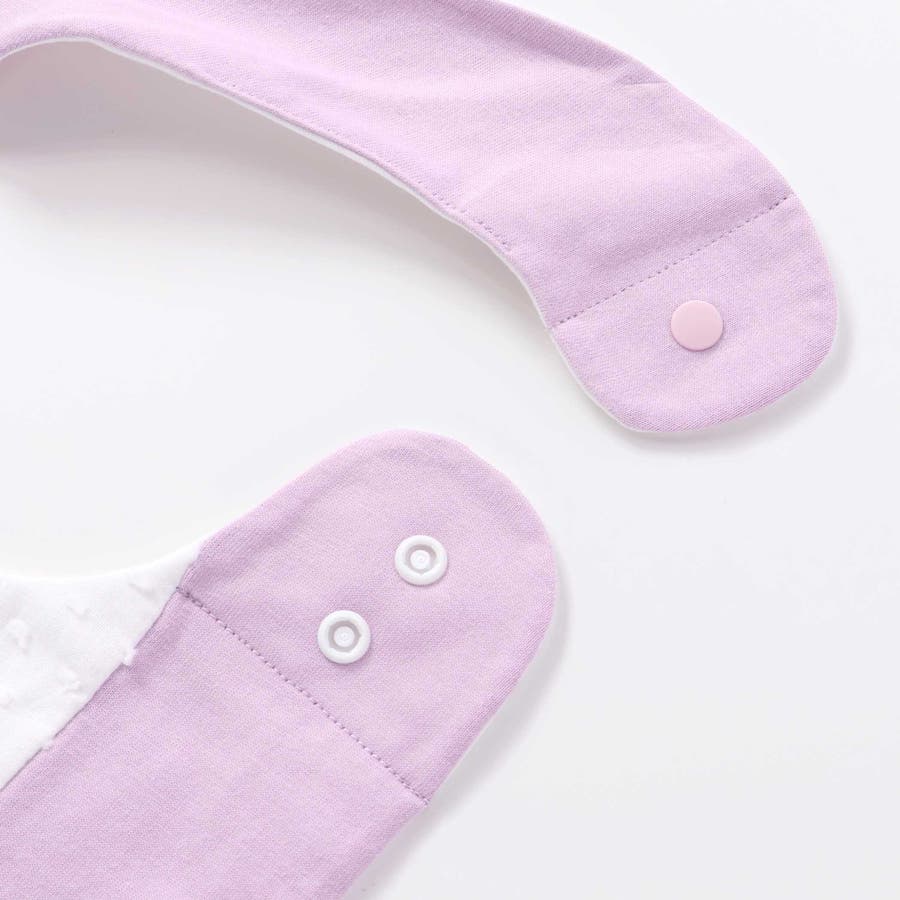 スタイホック留め部にホックが二つあり、赤ちゃんの成長に合わせて、首周りの調整が可能です。