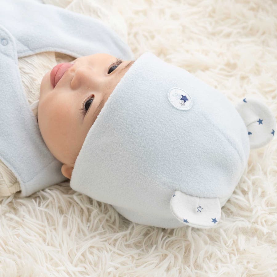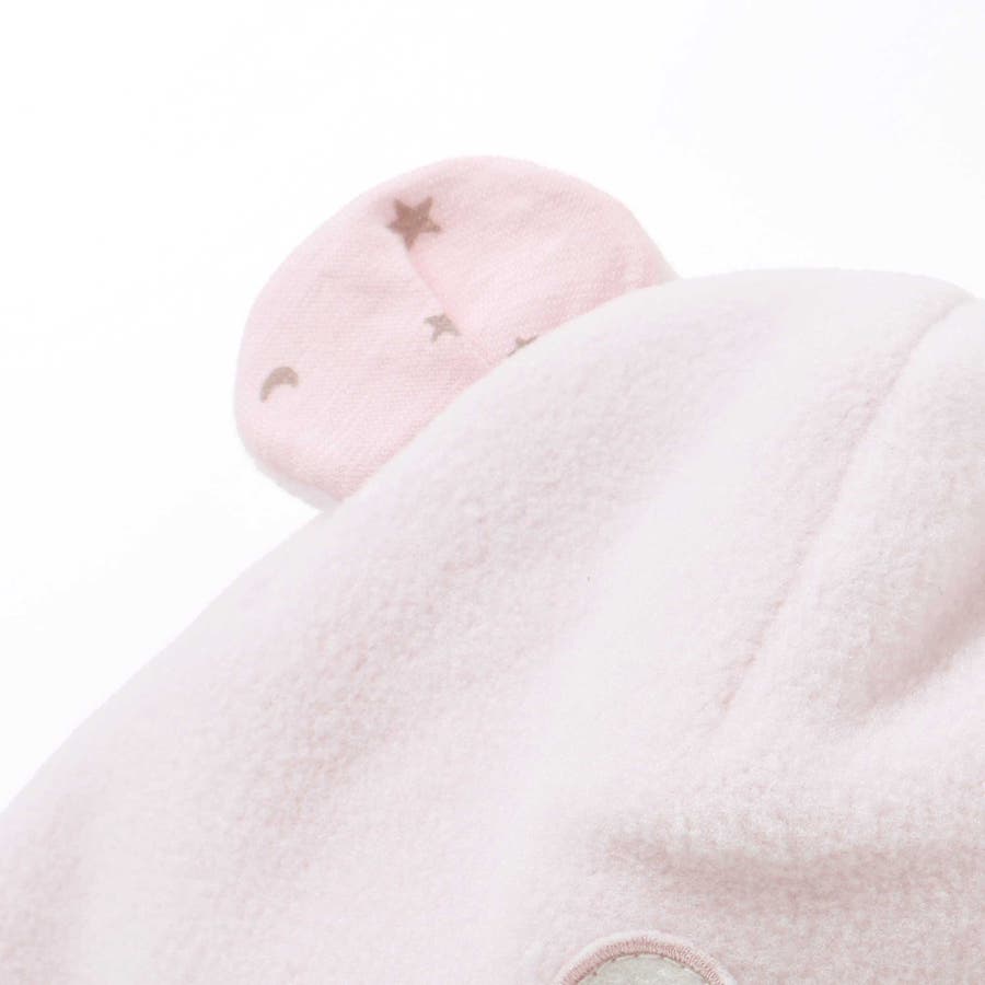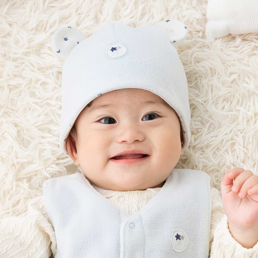本体と外側の耳部分には、ふんわりと暖かなフリース素材を使用している為、寒い季節も赤ちゃんの頭を優しく包み込み、快適な温かさを保ちます。