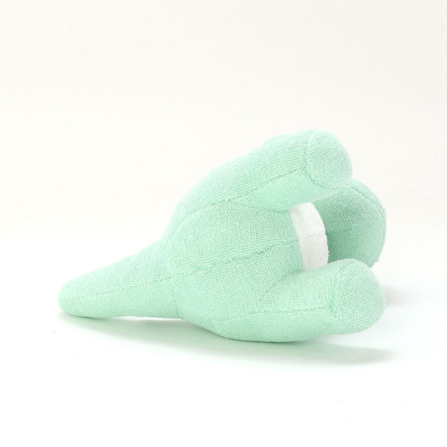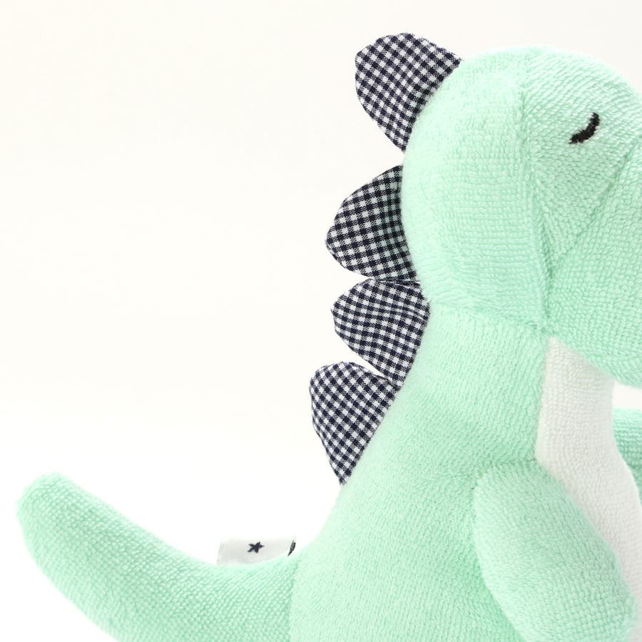柔らかい質感で赤ちゃんに安心感を与える恐竜の形のガラガラ(ラトル)です。