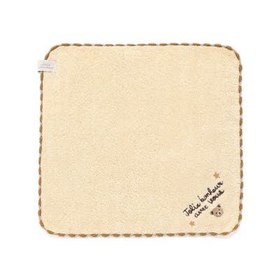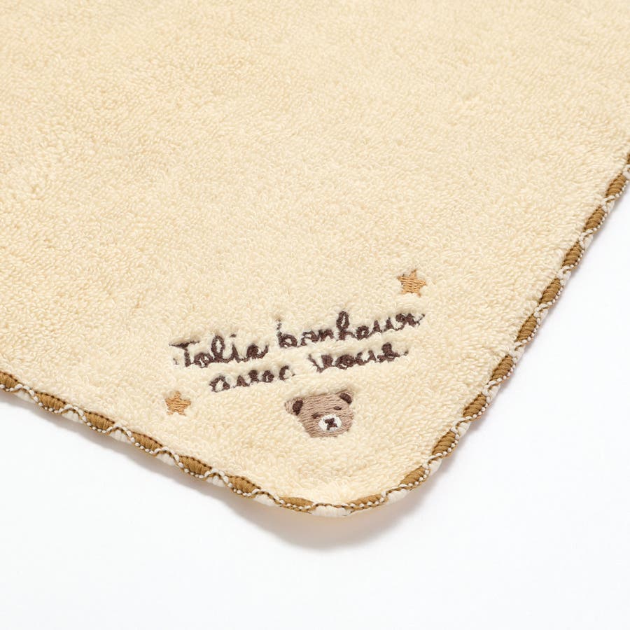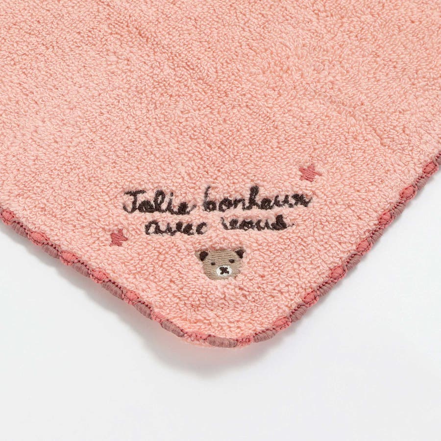 くまのルウちゃん刺しゅうが可愛い!幸せメッセージ入りパイルハンカチ。