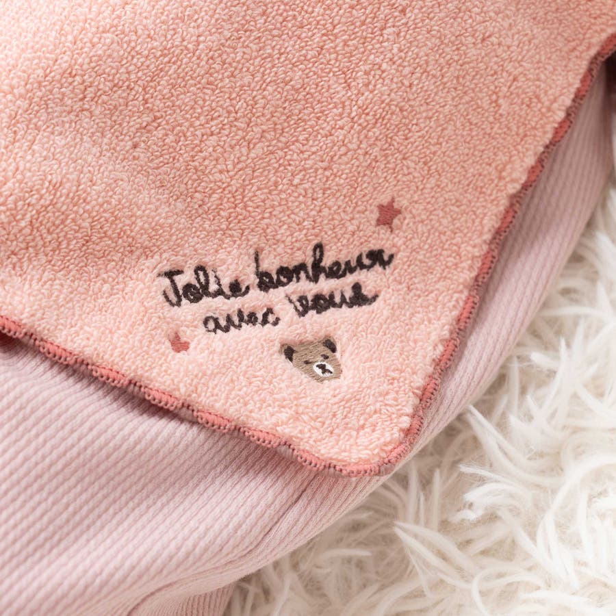 「jolie bonheur (素敵な幸福) avec vous(あなたと共に)」を意味するフランス語と、可愛いルウちゃんの刺しゅうがポイント。