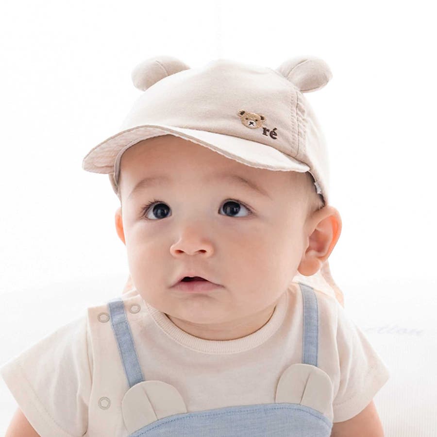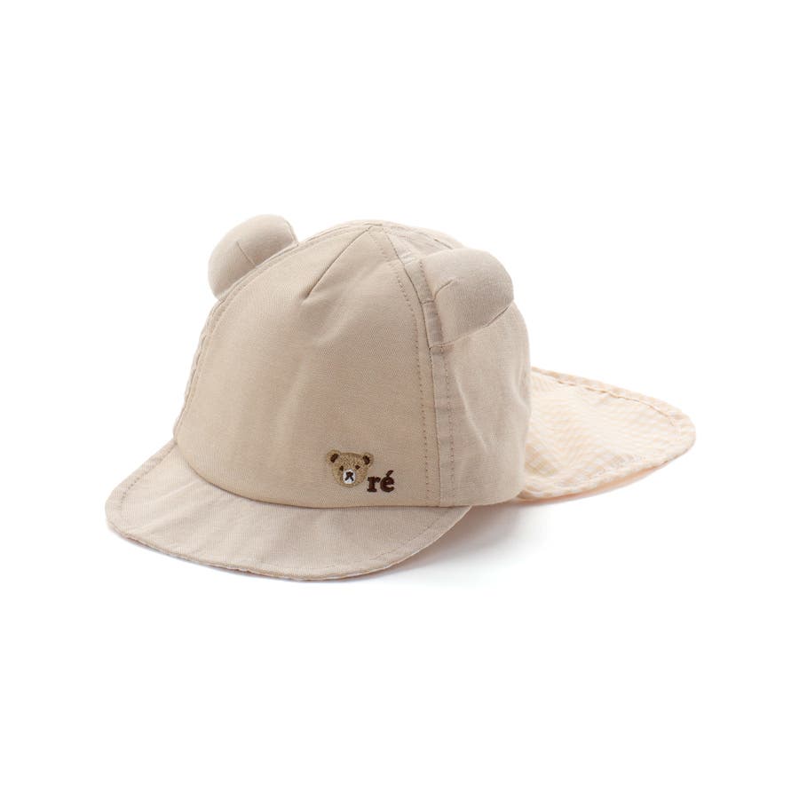 【 UVカット 】オックスくま耳日よけ付きキャップ(44~50cm)