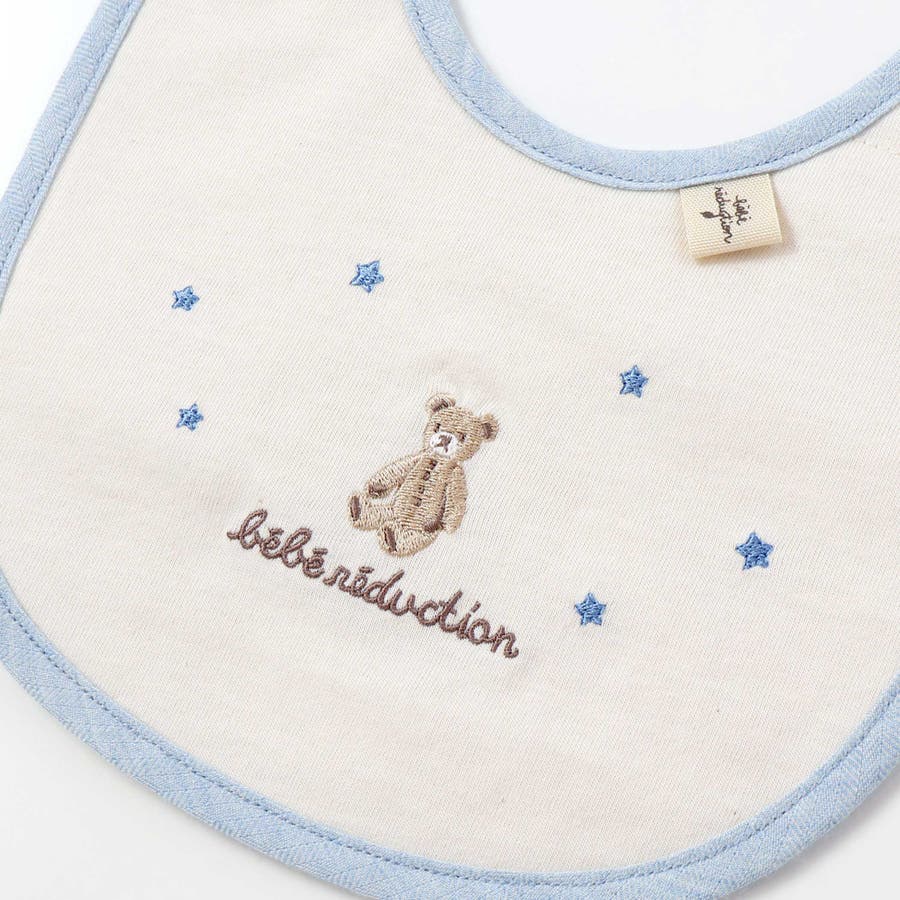 クマのルウちゃんや星のモチーフが愛らしい、肌に優しい男女兼用オーガニックコットンスタイ。