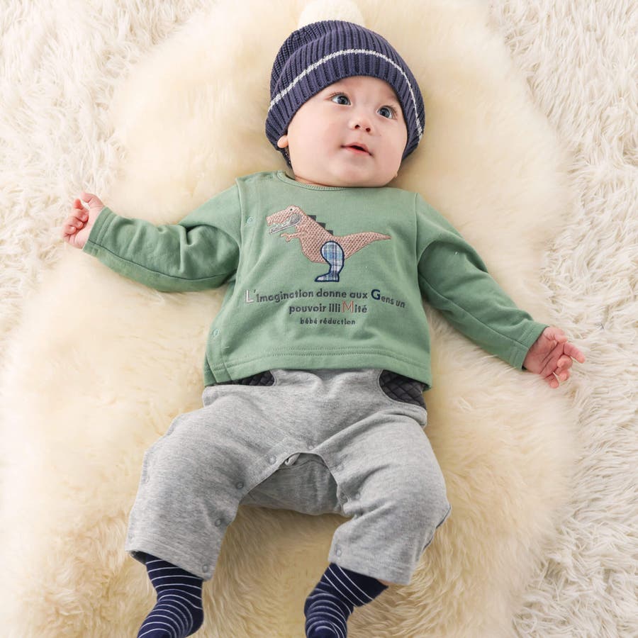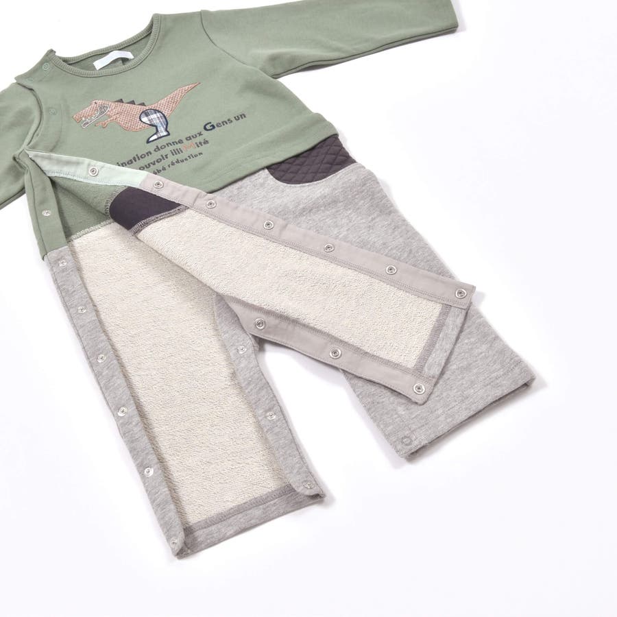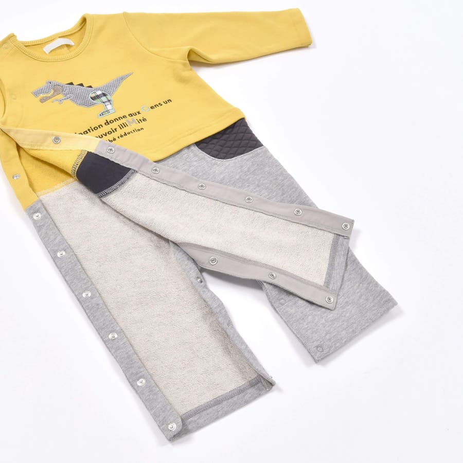 右肩から右裾・股下ホック付きで大きく開くので、動きの多いベビーのお着換えもラクラク♪