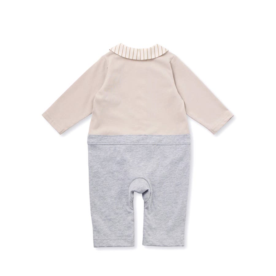 天竺ストライプ襟カバーオール(70~80cm)