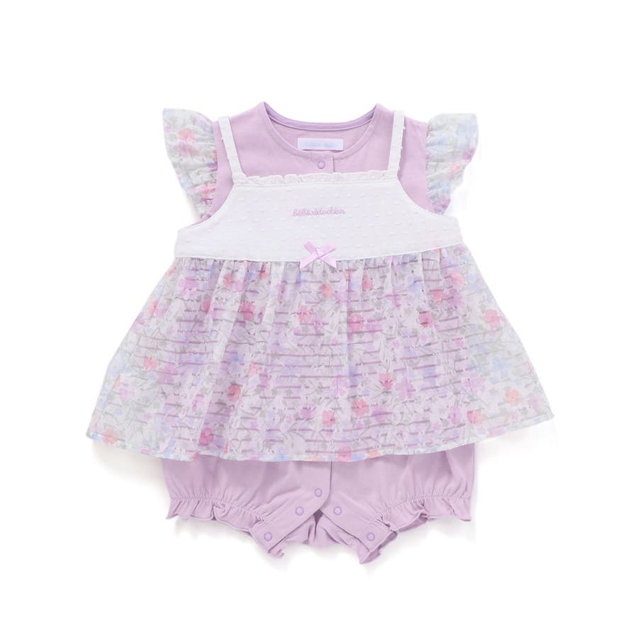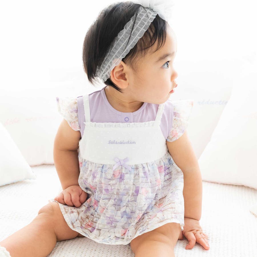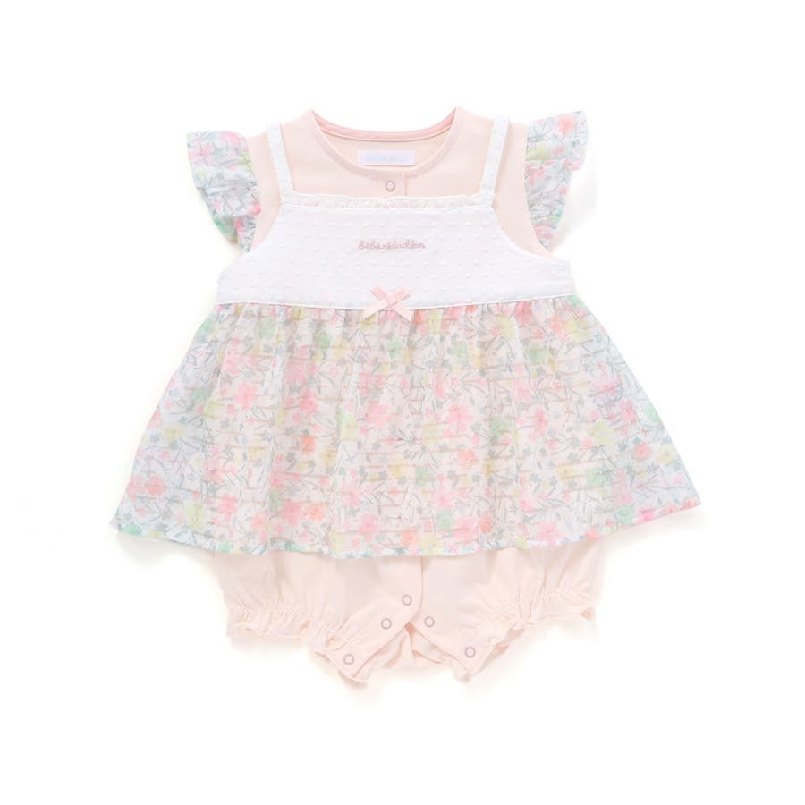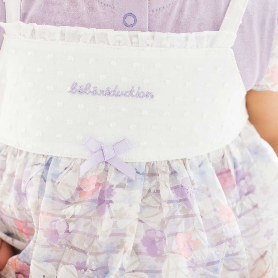 オーガンジー花柄プリントチュニック+カバーオールセット(70~80cm)