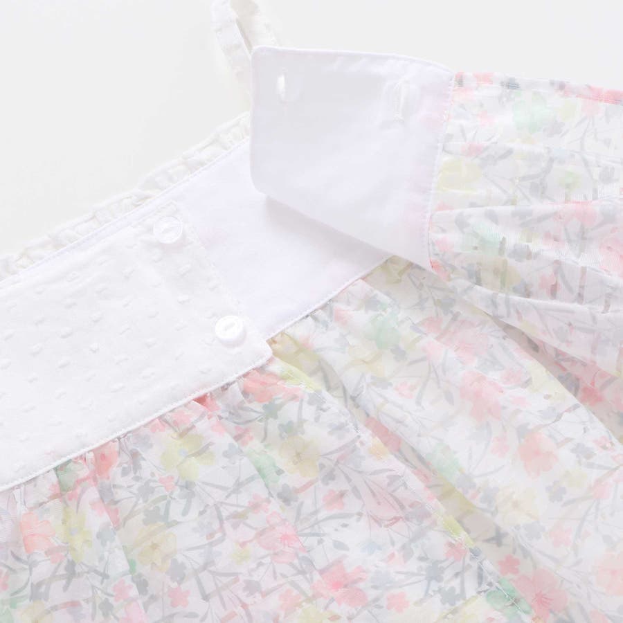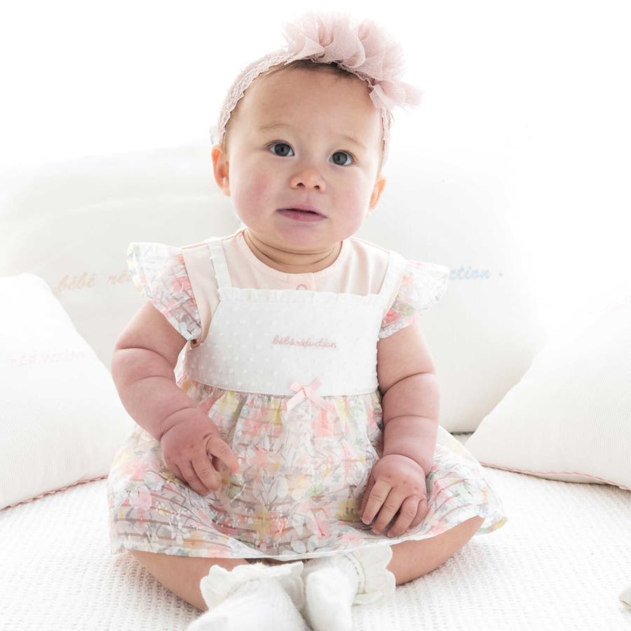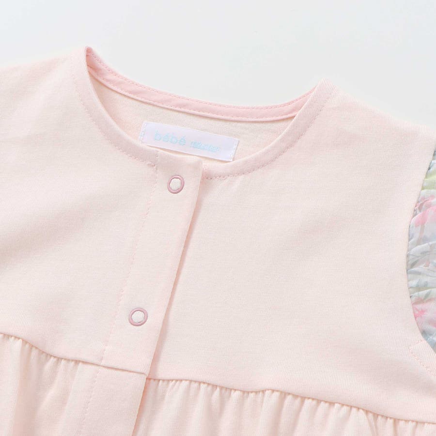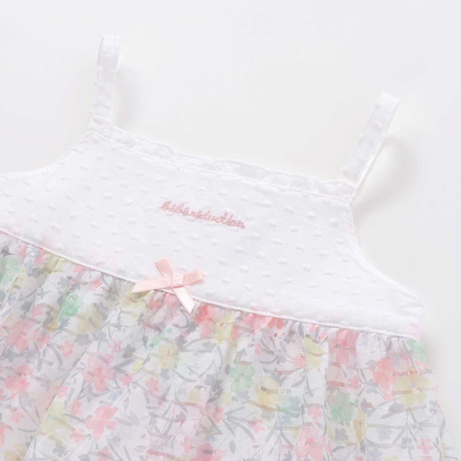 オーガンジー花柄プリントチュニック+カバーオールセット(70~80cm)