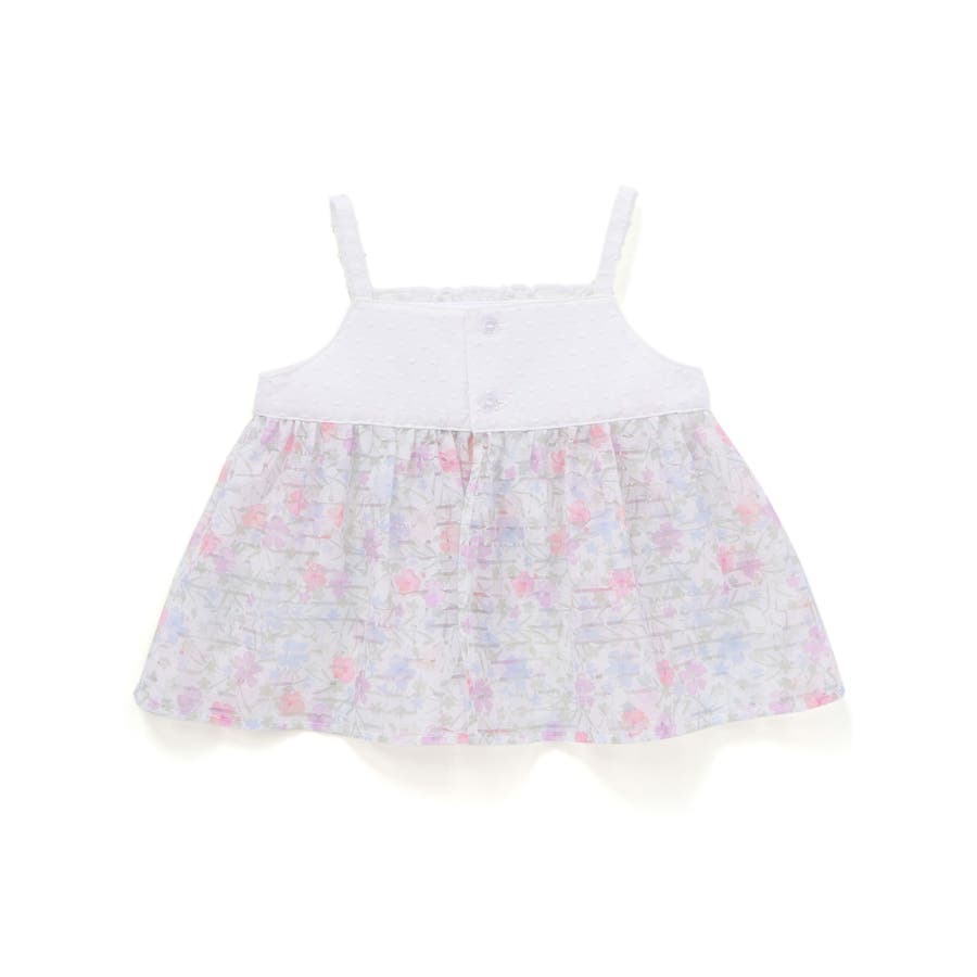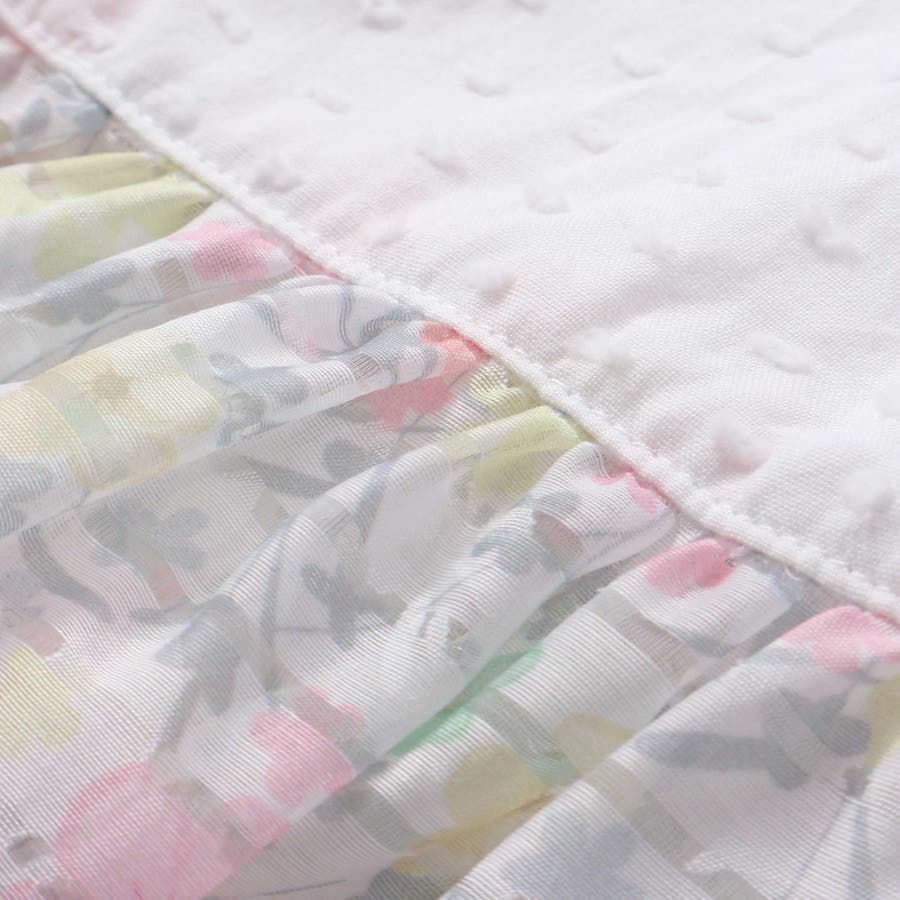 チュニックは胸元はカットドビーでスカート部分がオーガンジー花プリントで透け感がおしゃれです。