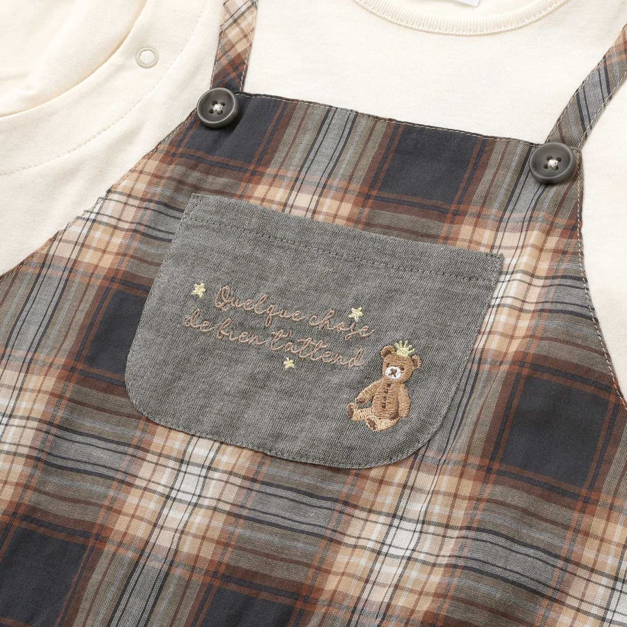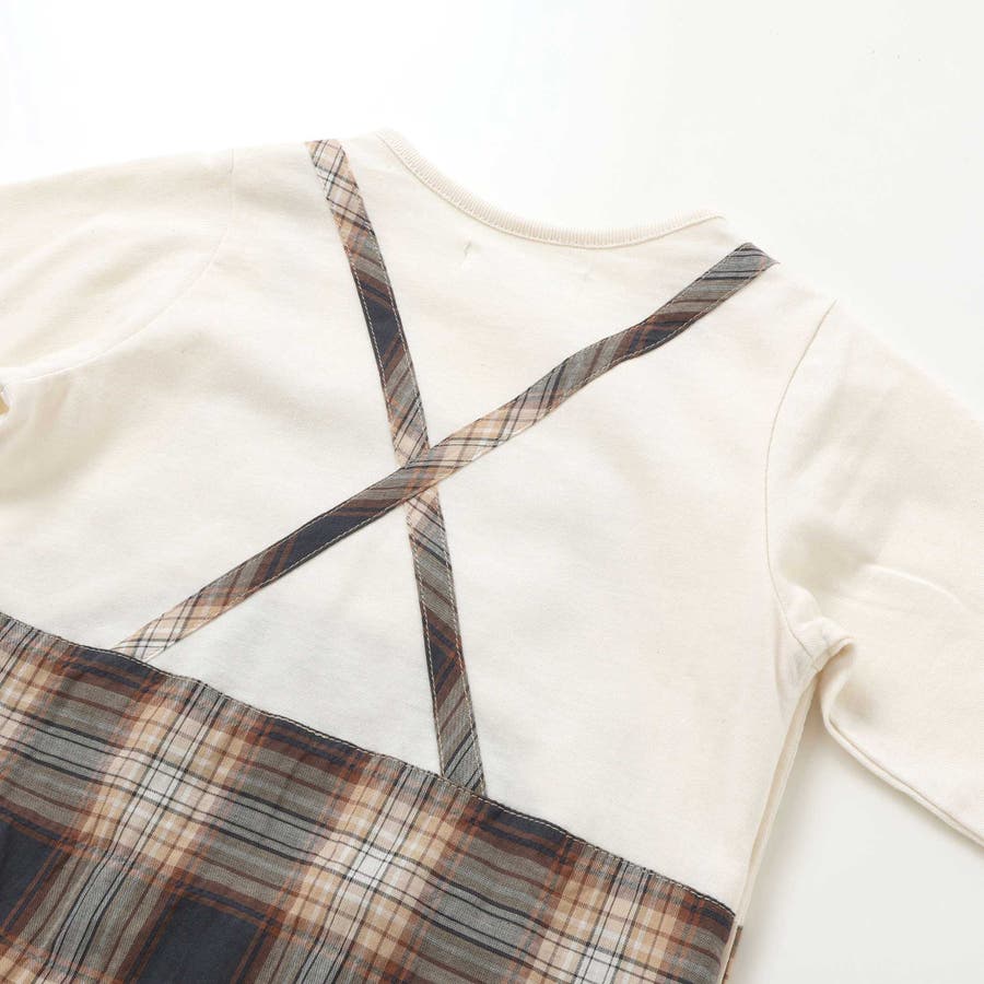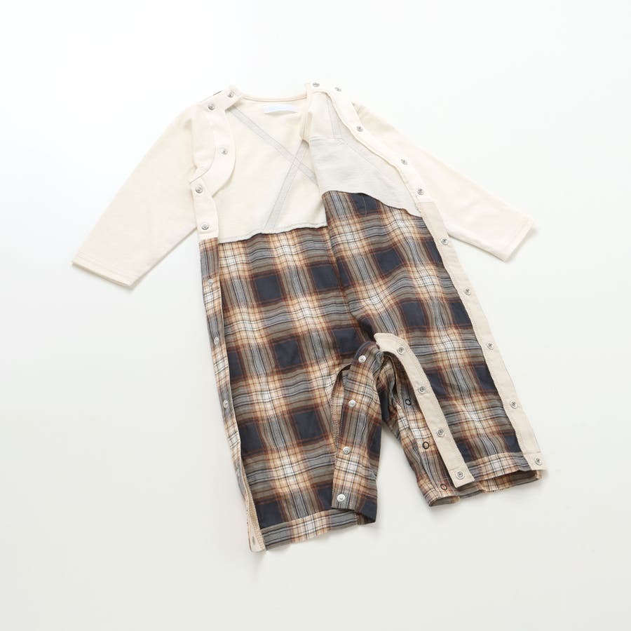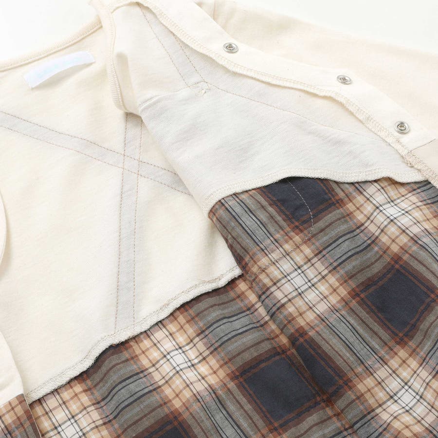 Tシャツ部分は天竺素材でロンパース部分のチェック生地はシャーリングの入った少し生地に凹凸していてナチュラル味のある素材感です。