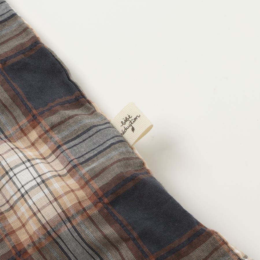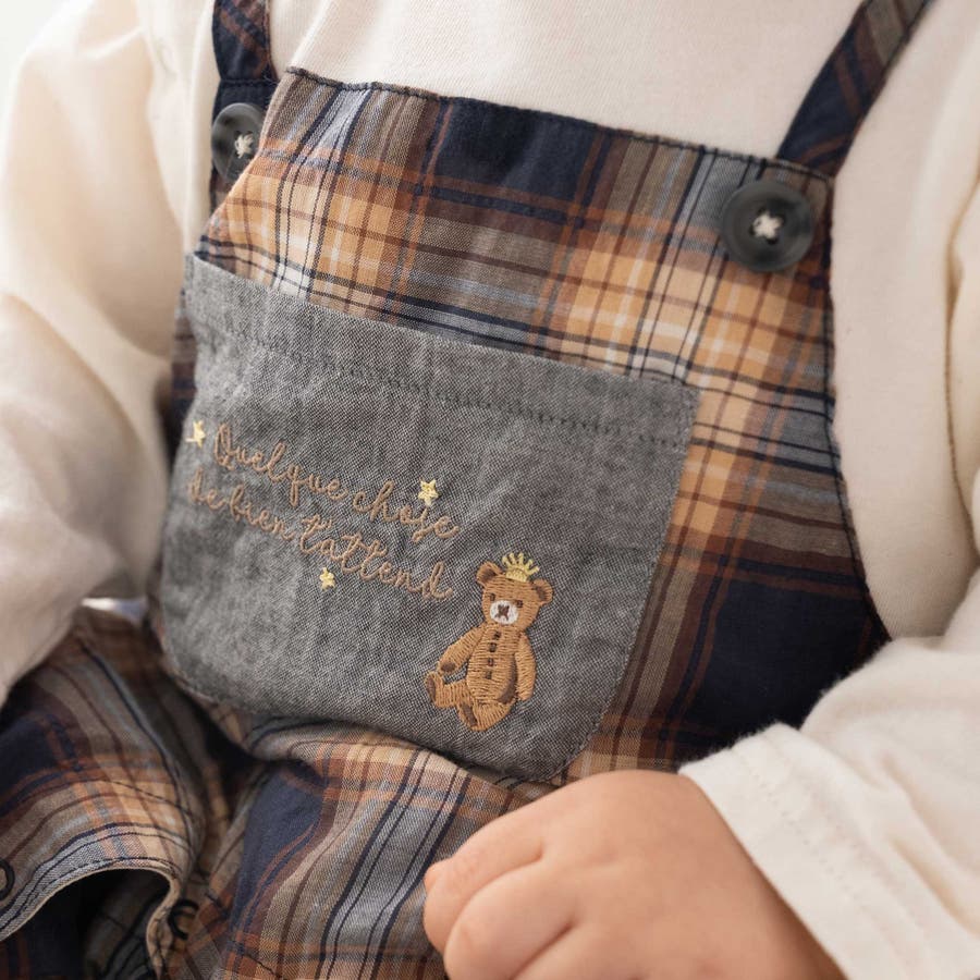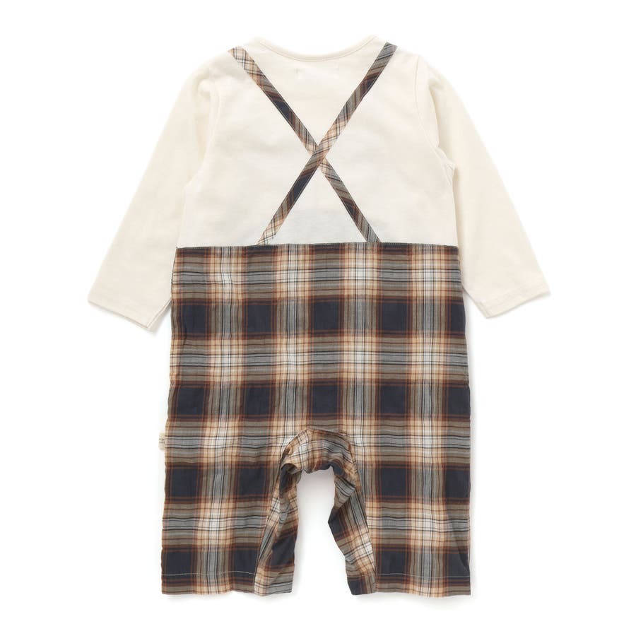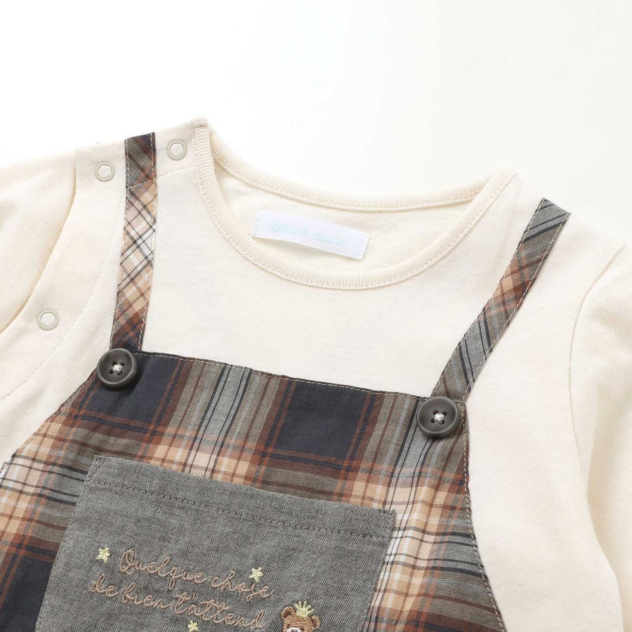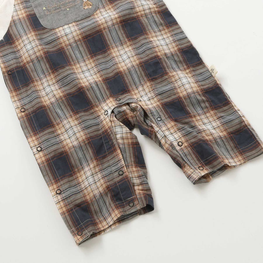 Tシャツ部分は天竺素材でロンパース部分のチェック生地はシャーリングの入った少し生地に凹凸していてナチュラル味のある素材感です。