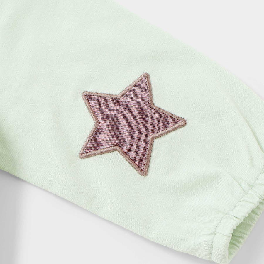 左袖には、デニムのように丈夫でありながら、軽くて柔らかなダンガリー素材の大きな星パッチをあしらいました。