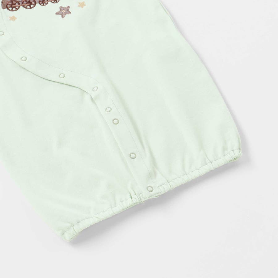 身生地には、やわらかく肌触りの良いコットン100%の天竺素材を使用している為、通気性にも優れており、デリケートな赤ちゃんの肌を優しく包み込みます。