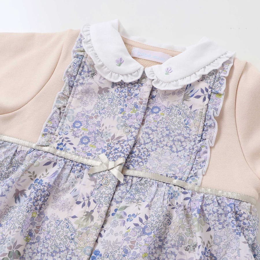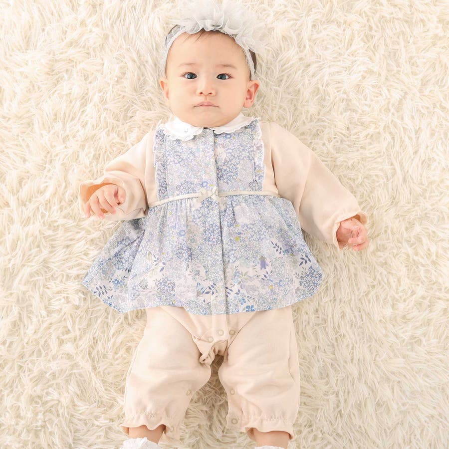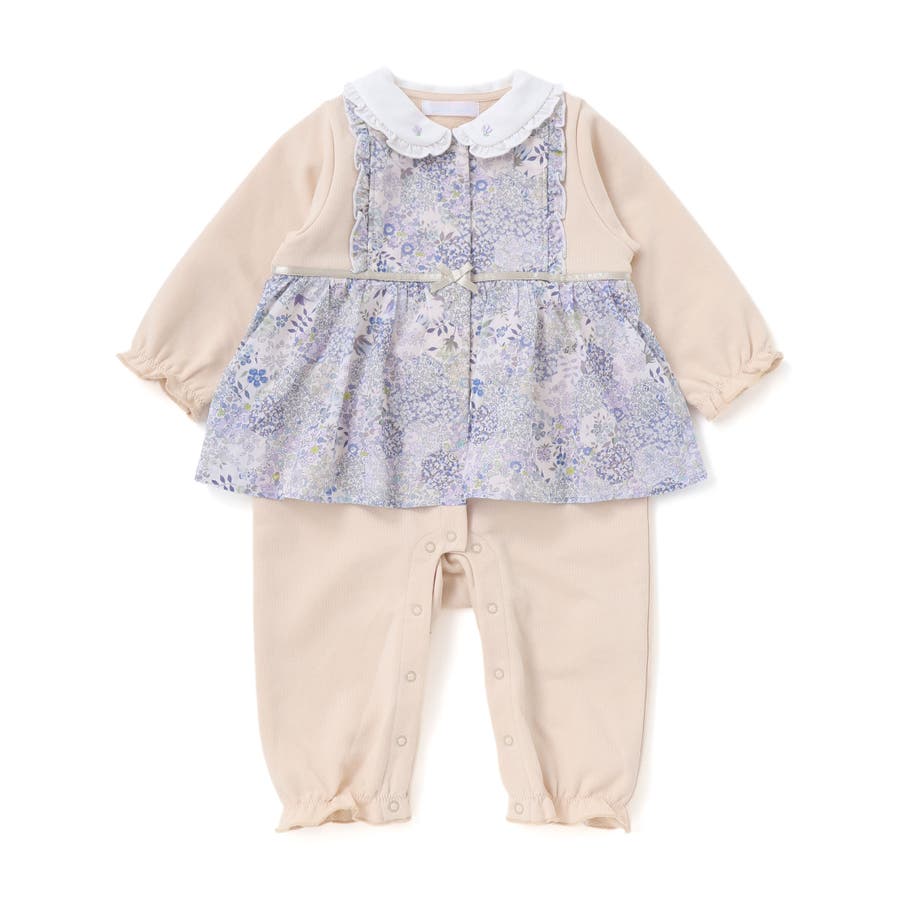 リバティ社のPatchwork Classics(パッチワーククラシックス)柄を使用した女の子ベビー用カバーオール。