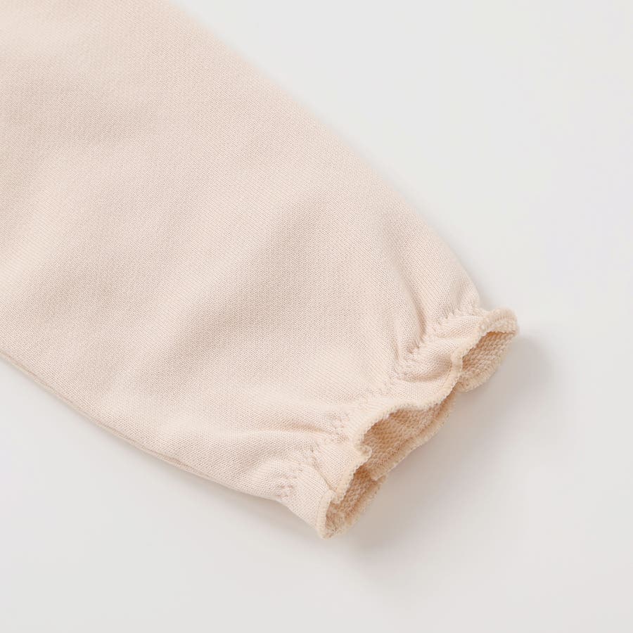 袖や身頃の切り替え部分にはミニ裏毛を使用しており、やわらかな肌触りで暖かさをプラスしています