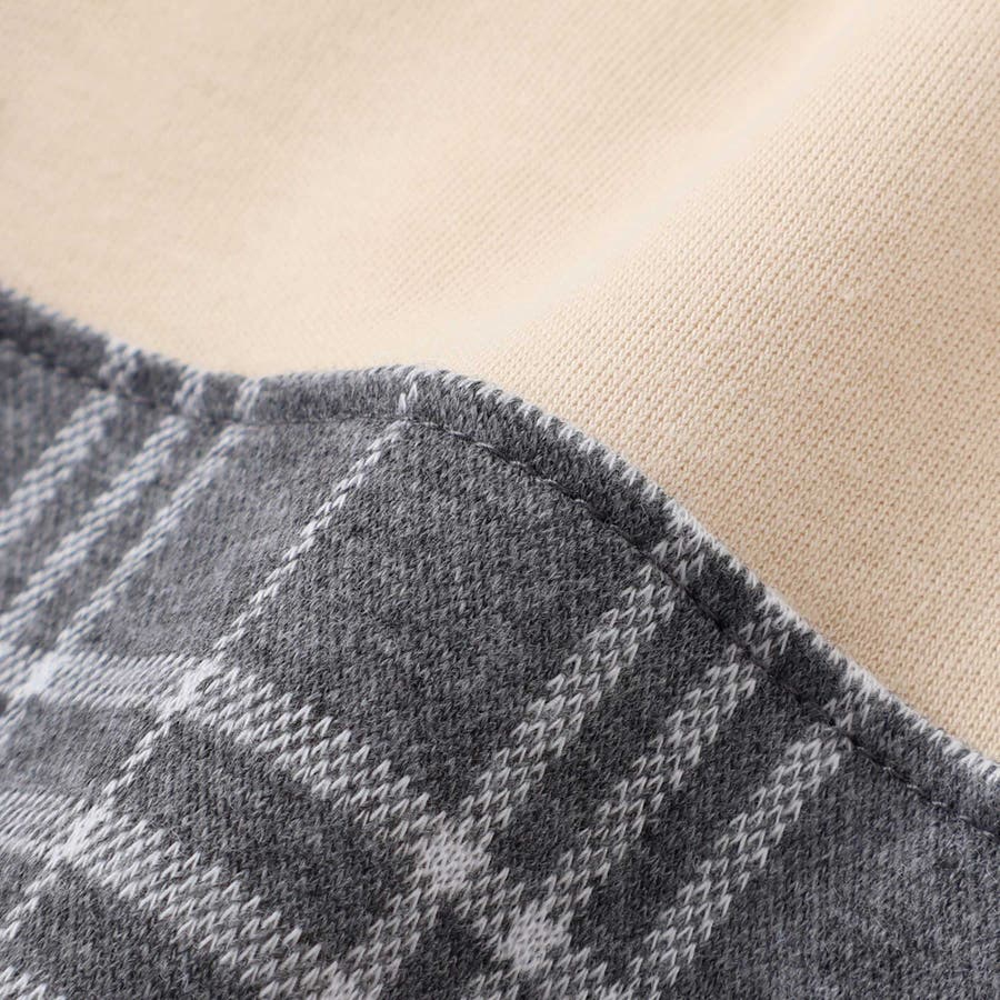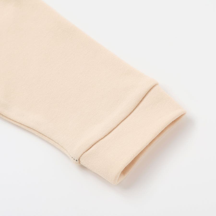 袖部分は、柔らかな伸縮性を持つスパンフライスで切り替えられており、赤ちゃんの腕の動きを妨げません。