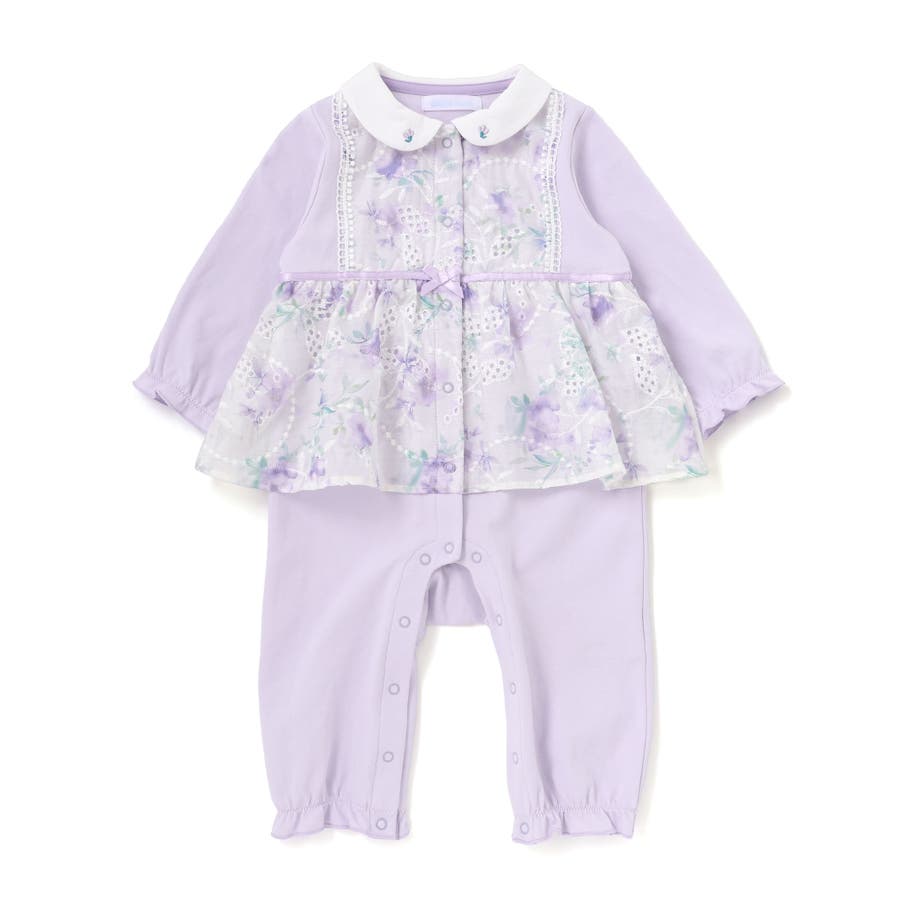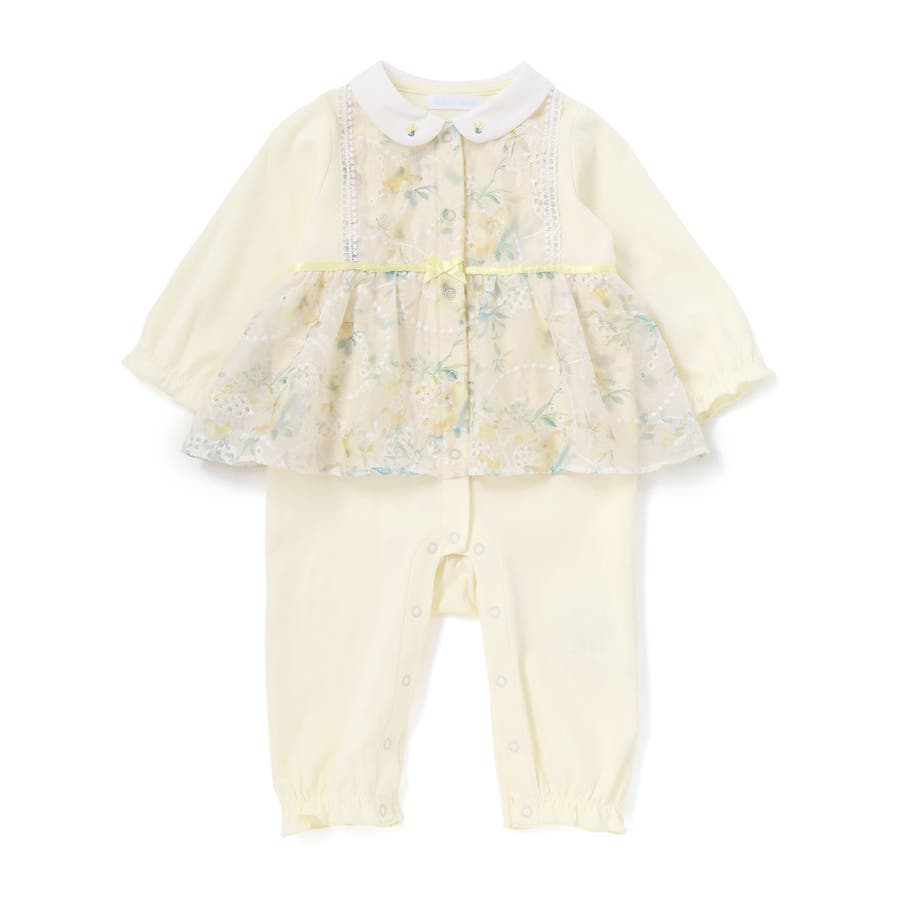【お揃い】オーガンジー花柄プリントスカート付き長袖カバーオール(70~80cm)
