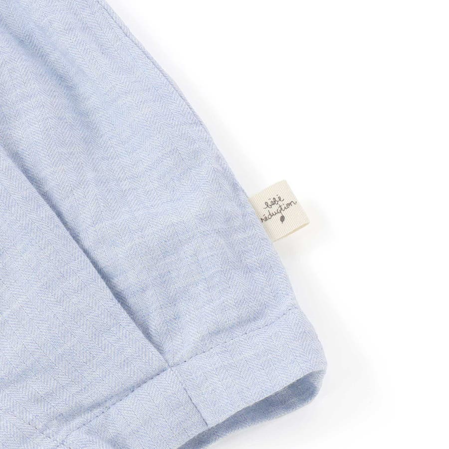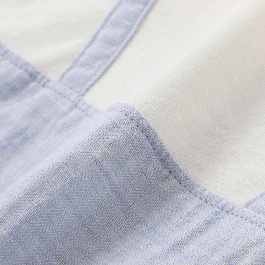 ブルーのシャンブレー生地もオーガニックコットンの素材です。