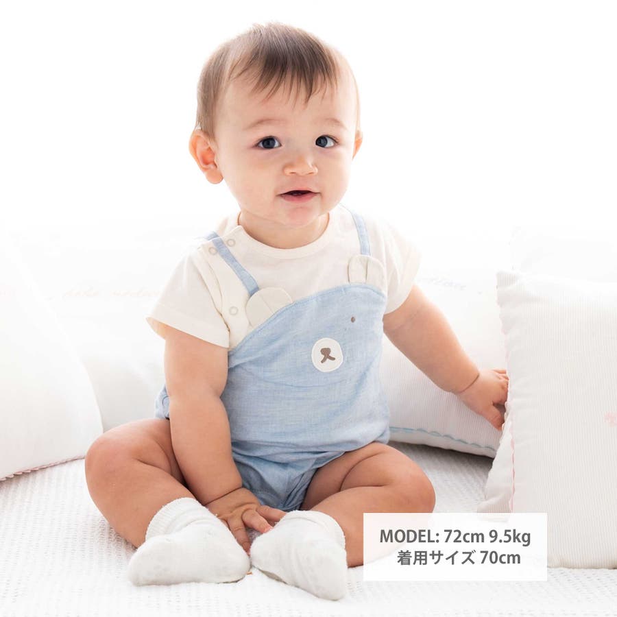 オーガニックコットンクマパッチ半袖カバーオール(70~80cm)