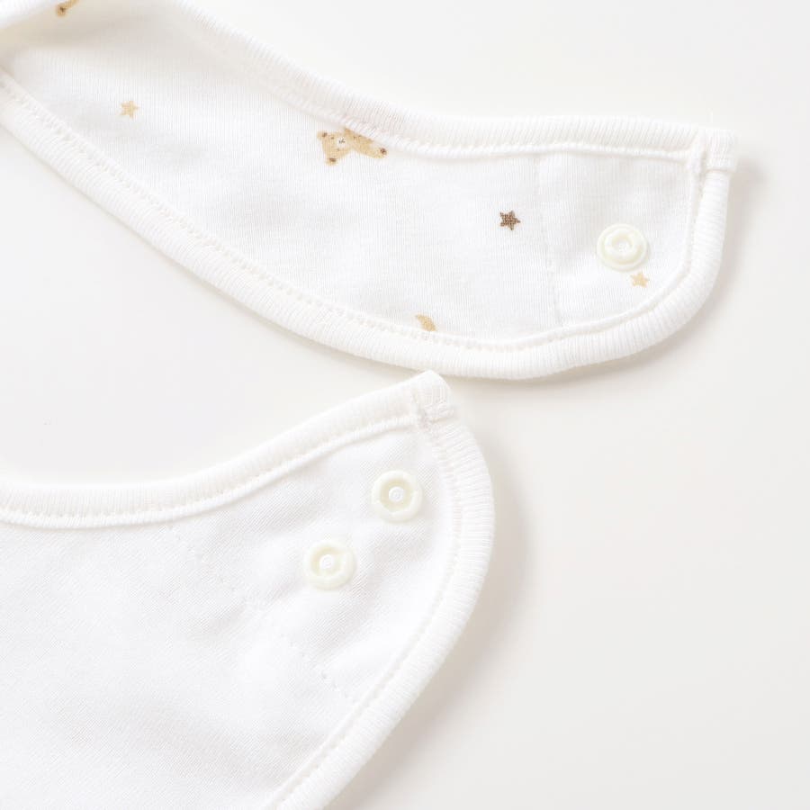 肌触りの良い、フライス生地で仕立てたスタイ。