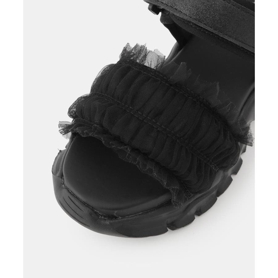 【デザイン・シルエット】 ・ボリュームソールがトレンド感を演出するサンダル。 ・フロントにあしらわれたフリルが、甘さをプラスしつつも、厚底で大人っぽく仕上げています。 ・調整可能なストラップ仕様で快適な履き心地を実現。 【カラー】 ・ブラック、オーロラの2色展開。 【スタイリングポイント】 ・カジュアルなソックス合わせで抜け感を演出しつつ、スカートやワンピースでフェミニンに仕上げるのがポイント。 ・パンツスタイルにもマッチするので、デイリーからお出かけまで幅広いシーンで活躍します。 ※撮影時の光、お使いのモニター環境によって色の見え方が違う場合がございます。