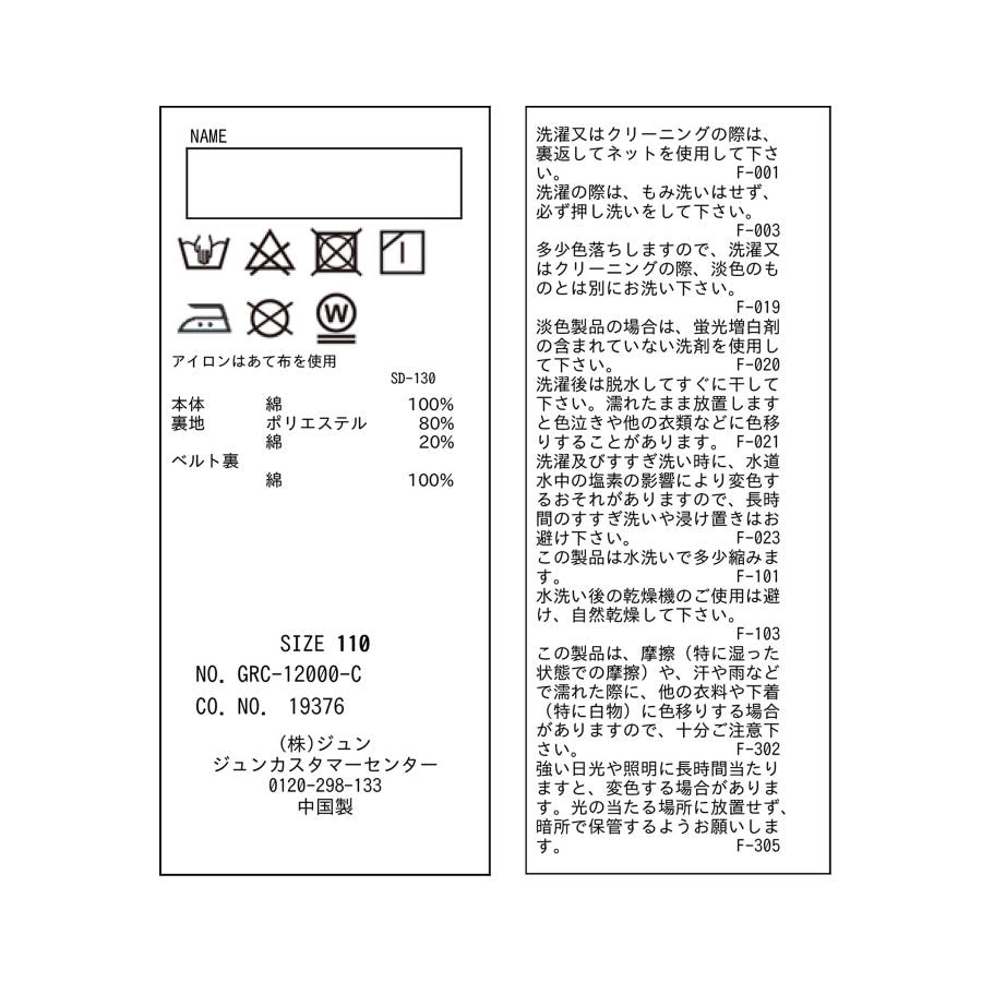 素材 | ベージュ(27):(本体) 綿 100% (裏地) ポリエステル 80% 綿 20% (ベルト裏) 綿 100%|ブルー(44):(本体) 綿 100% (裏地) ポリエステル 80% 綿 20% (ベルト裏) 綿 100%|パープル系(56):(本体) 綿 100% (裏地) ポリエステル 80% 綿 20% (ベルト裏) 綿 100% |